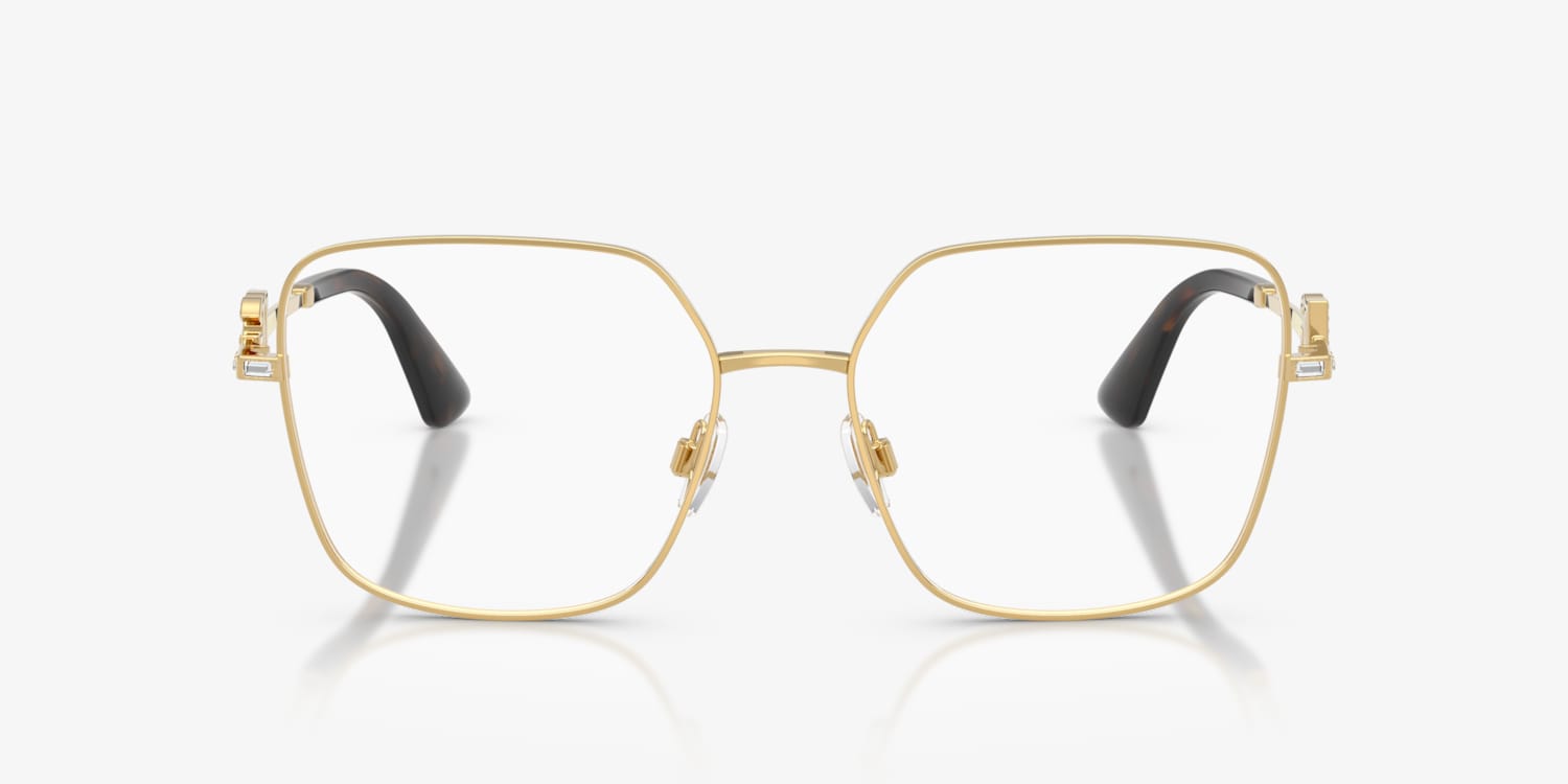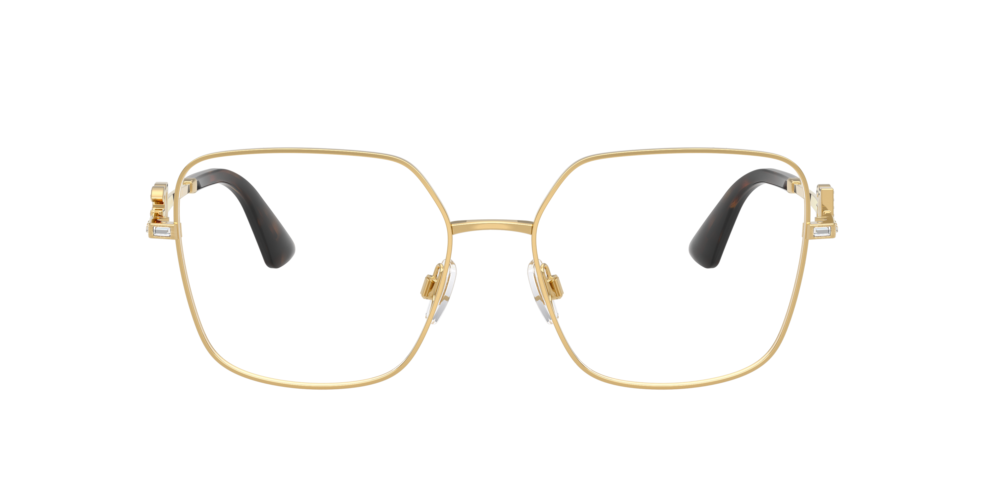 Elevate your look with the Dolce&Gabbana DG1367B optical glasses. These gold frames feature sharp angles and a square eyeglasses design with a full-rim style for a sophisticated edge. Adorned with baguette crystals and a dazzling crystal-embellished DG Crossed Logo on the temples, they exude opulence. The adjustable nose pads and acetate temple tips enhance comfort while adding a polished touch of color.