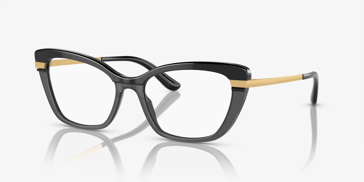 Experience the perfect blend of style and comfort with Dolce&Gabbana DG3325 eyeglasses. These cat-eye shaped glasses feature a polished black on transparent black acetate frame that adds a modern twist to a timeless design. The black color gives these frames a sleek, sophisticated look while the transparent back adds a playful touch. With these eyeglasses, you'll be able to express your unique style and elevate your vision at the same time.