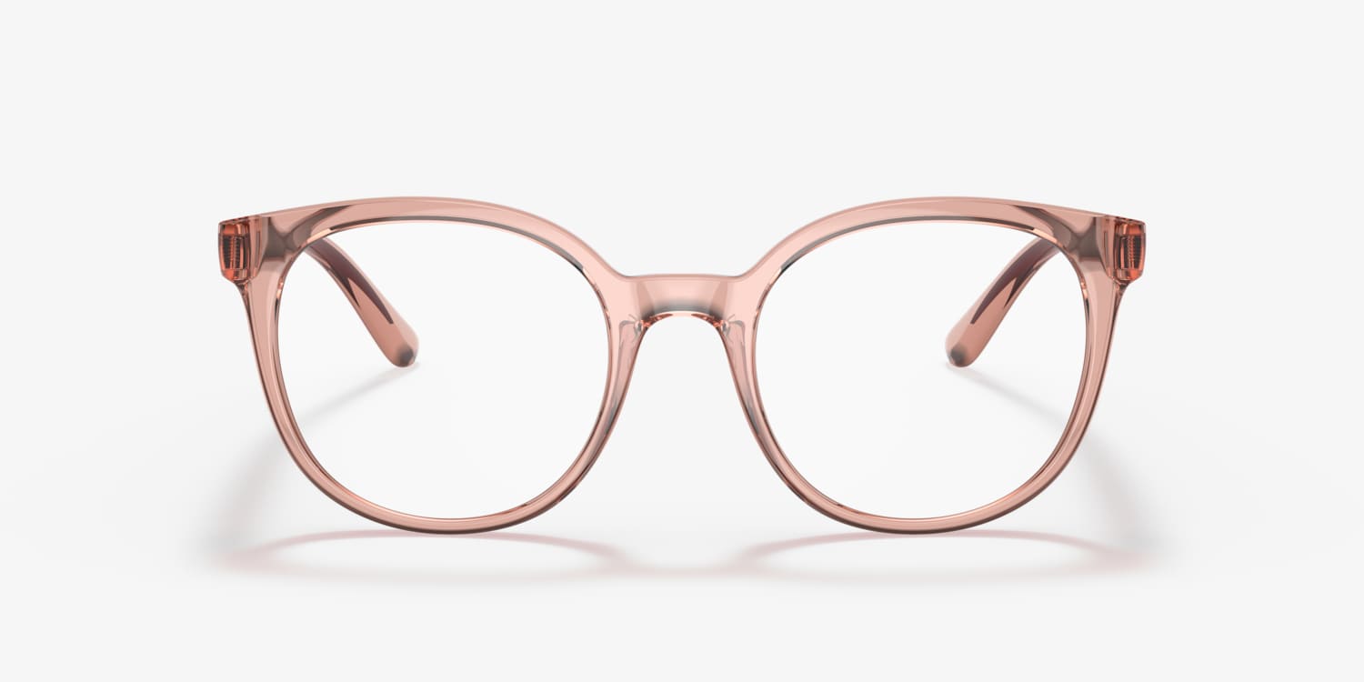 Enhance your fashion with Dolce&Gabbana DG5083 eyeglasses. The polished transparent pink frame, in a unique phantos shape, adds a touch of glamour to any look. These glasses are not only chic but also functional, providing clear vision. The sophisticated design and color make these frames a versatile choice for everyday wear.