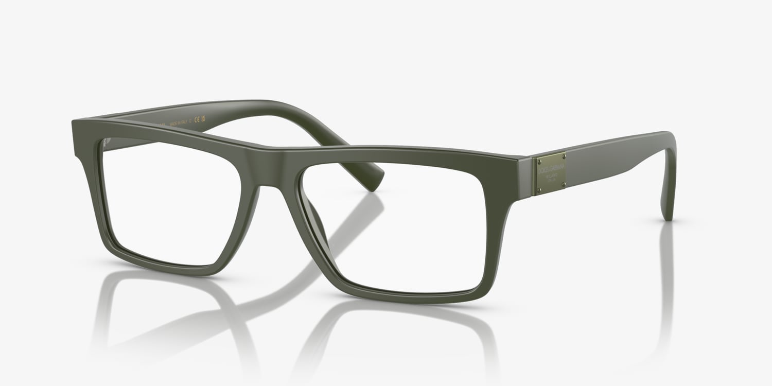 Experience the perfect balance between style and optical functionality with Dolce&Gabbana DG3368 eyeglasses. Crafted from durable acetate, these rectangle-shaped frames feature a matte dark green finish, adding a sophisticated touch to your look. The black temples contrast beautifully with the matte frame color, creating an eye-catching visual effect. These glasses are not only stylish but also practical in their dark green hue.