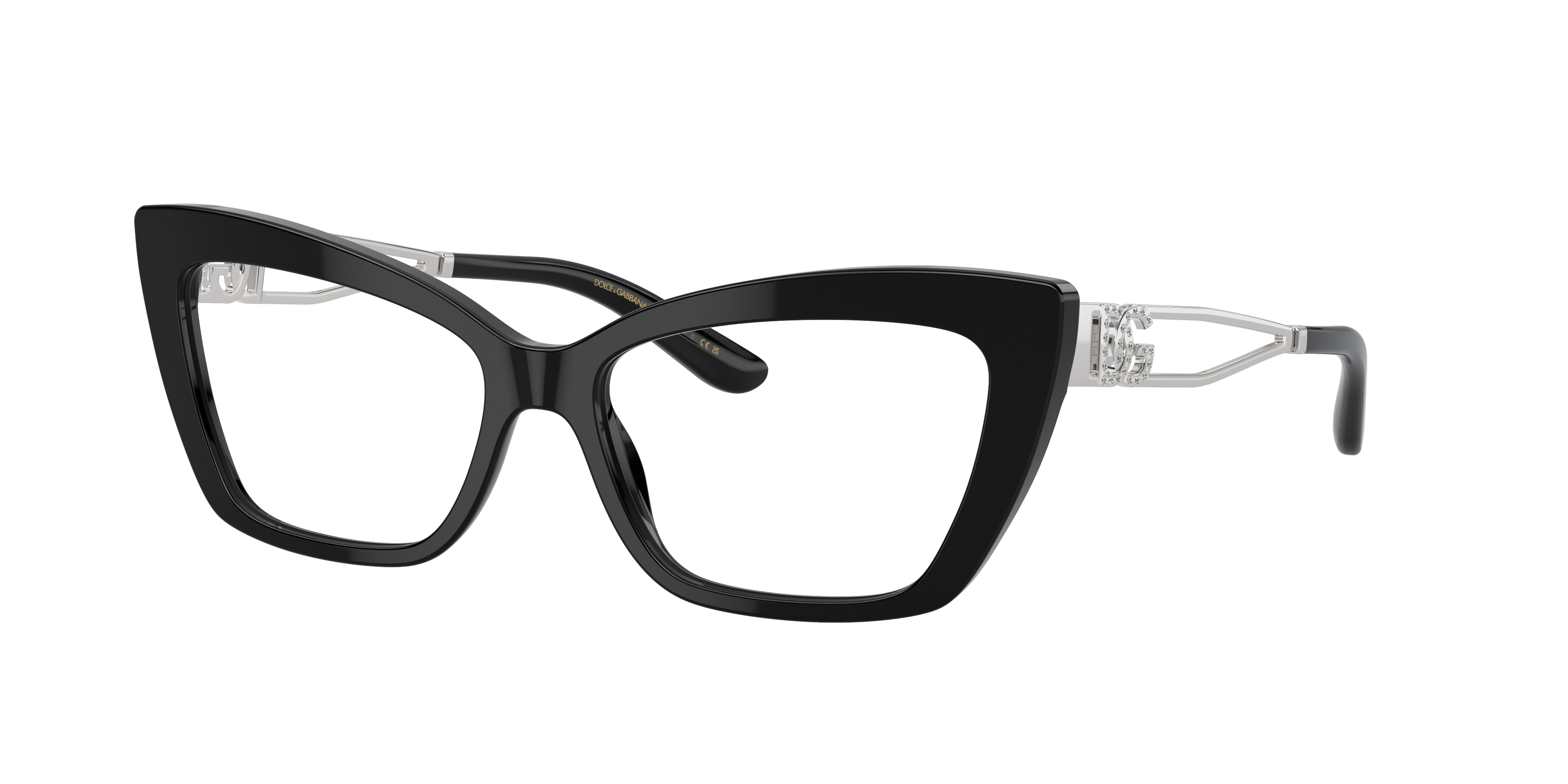 Dolce&Gabbana DG3375B eyeglasses seamlessly blend style and comfort. Crafted from durable acetate, the cat eye shape adds a touch of vintage glamour to your look. The polished black frame is adorned with strass for added sparkle. These glasses are not only stylish but also practical. Embrace sophistication and elegance by choosing these eyeglasses as your new fashion accessory.