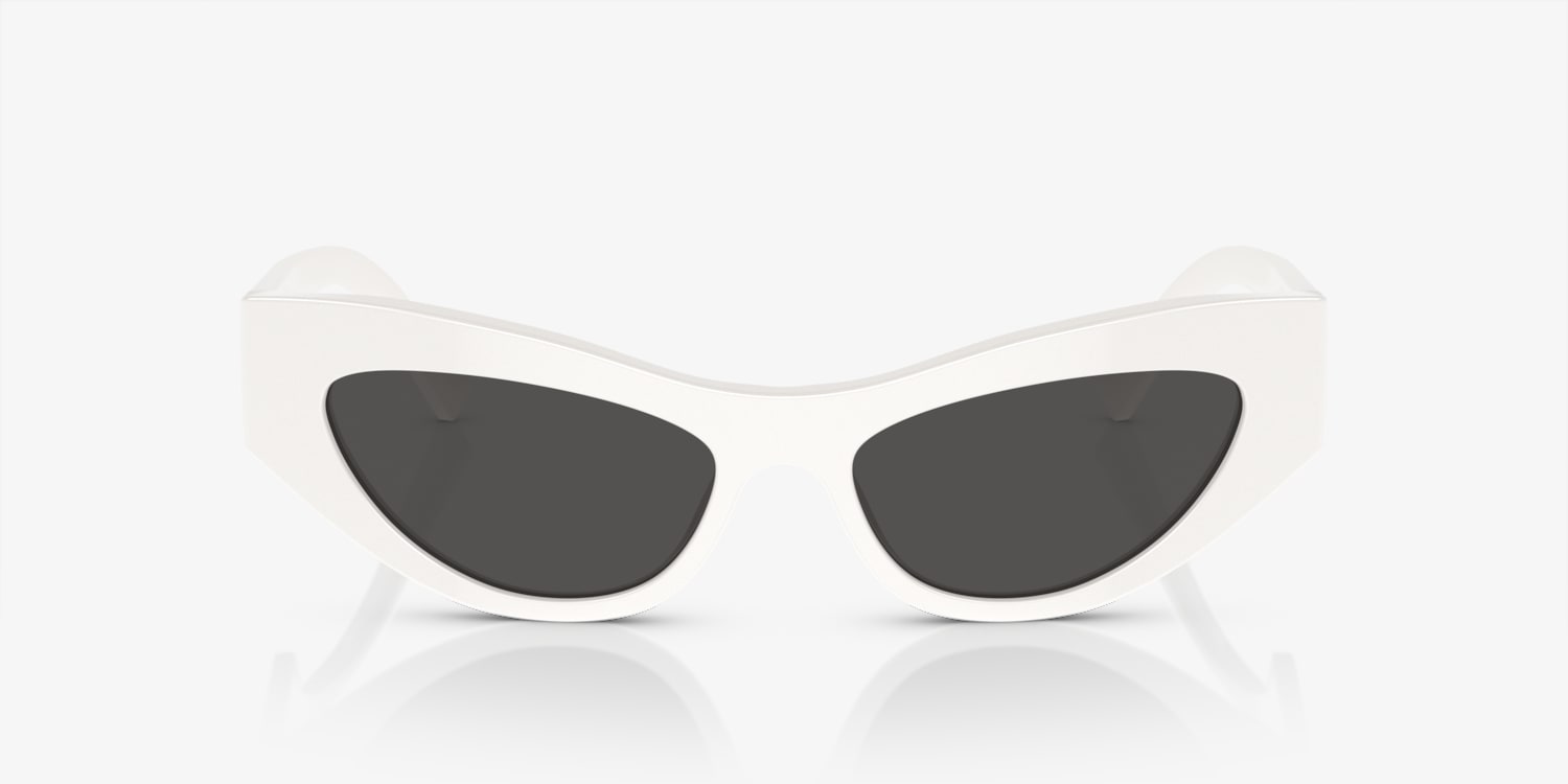 Experience the ideal balance between style and performance with Dolce&Gabbana DG4450 sunglasses. These cat eye-shaped glasses feature a polished white acetate frame that adds a touch of elegance to any look. The solid dark grey lenses not only provide excellent protection but also add a sophisticated touch to the overall design. Embrace your unique style with these statement-making shades. Available with prescription lenses.