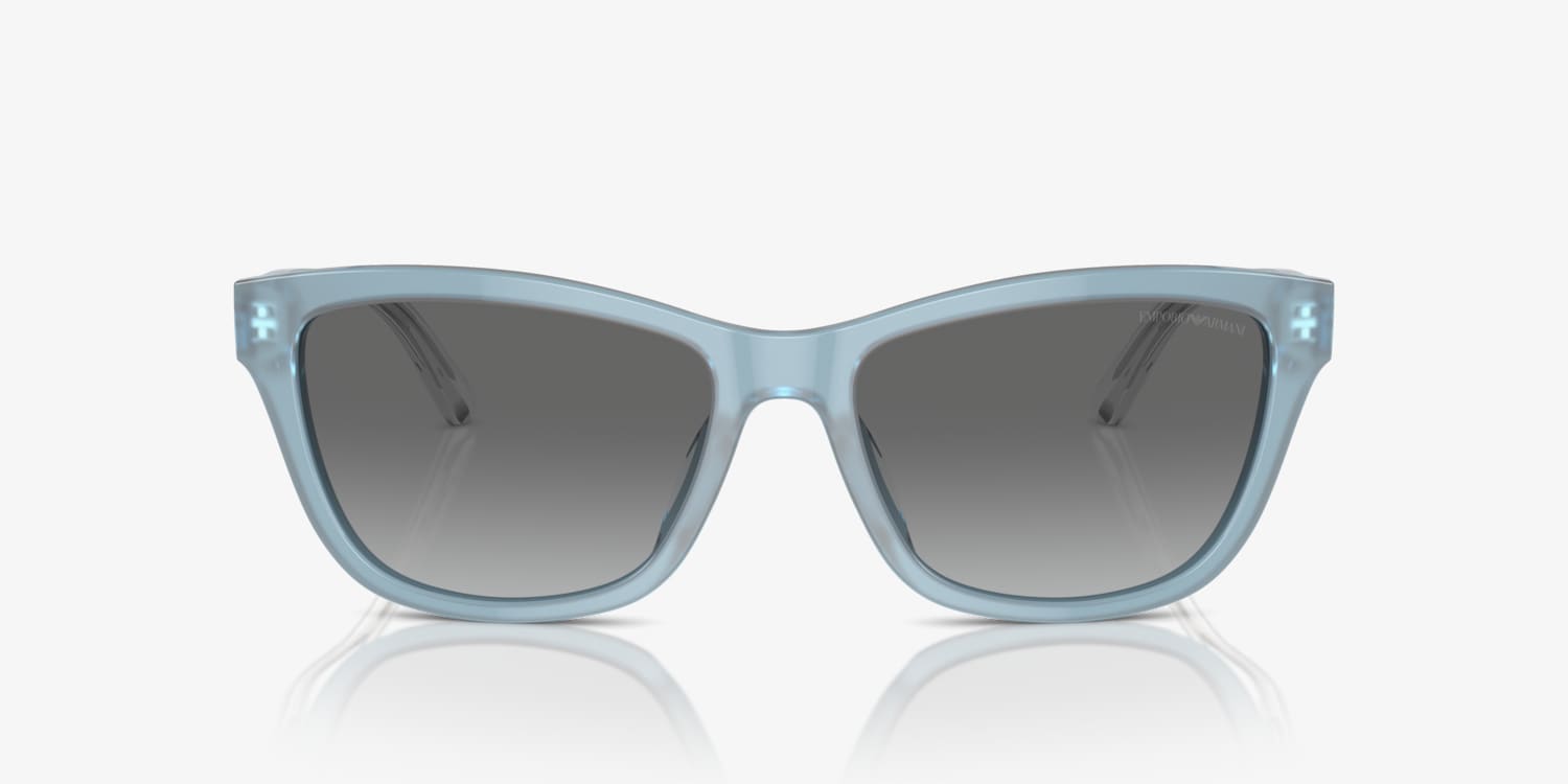 Discover the impeccable synergy between style and optics in Emporio Armani EA4227U. The cat eye shape, crafted from polished acetate, adds a touch of glamour to any look. The frame color finish in shiny opaline azure is complemented by grey gradient lenses, offering both style and practicality. These shades are designed to elevate your fashion game while providing excellent protection for your eyes. Embrace the Emporio Armani vision with these stunning sun glasses. Available with prescription lenses.