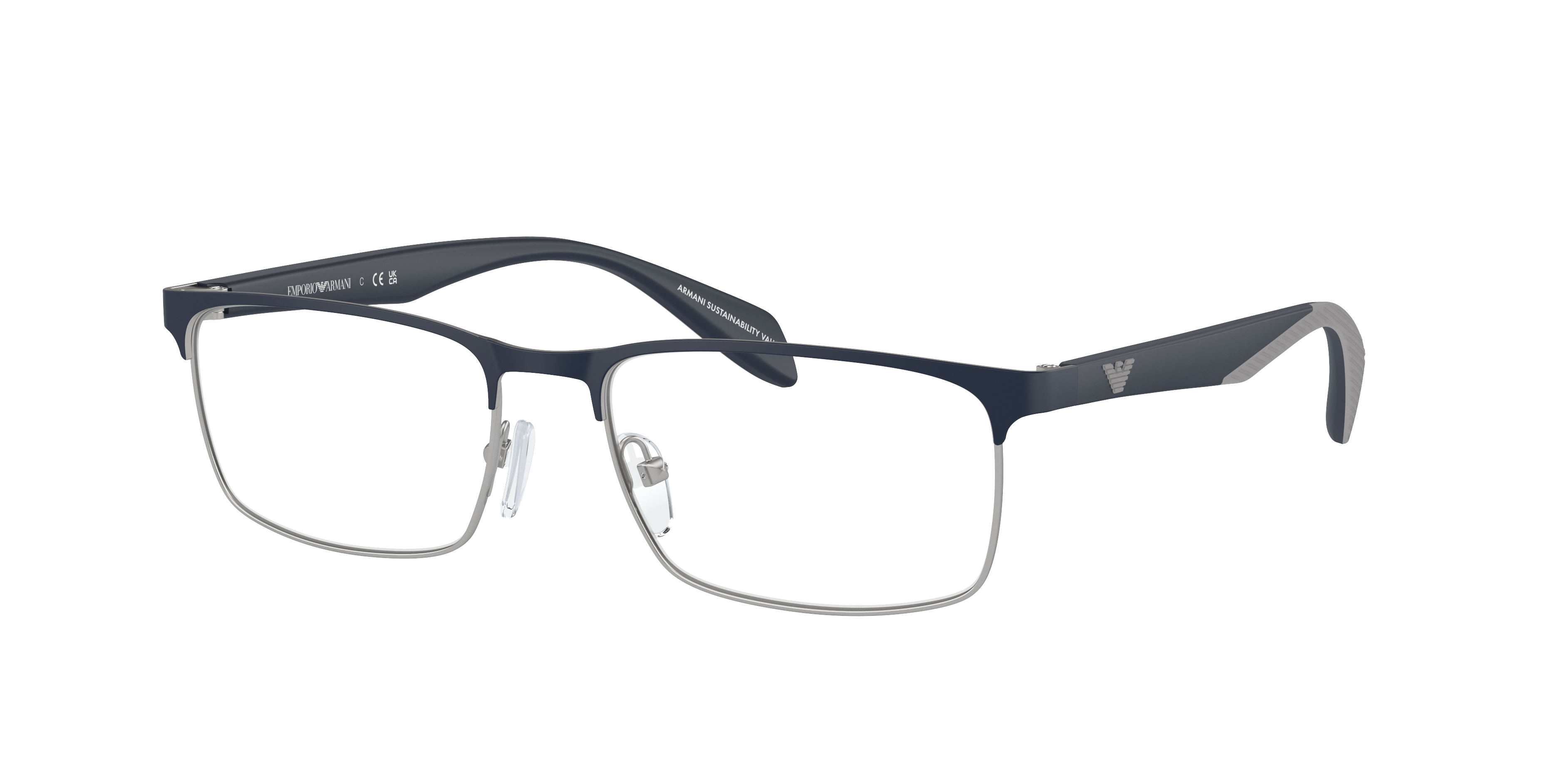 Elevate your style game with Emporio Armani EA1149 eyeglasses. The rectangle shape and matte silver/blue frame give these frames a sleek, modern look. Crafted from durable metal, these glasses are designed to last. The blue lenses adds a touch of sophistication to any outfit. Embrace the synergy of fashion and functionality with these timeless shades. Available with prescription lenses.