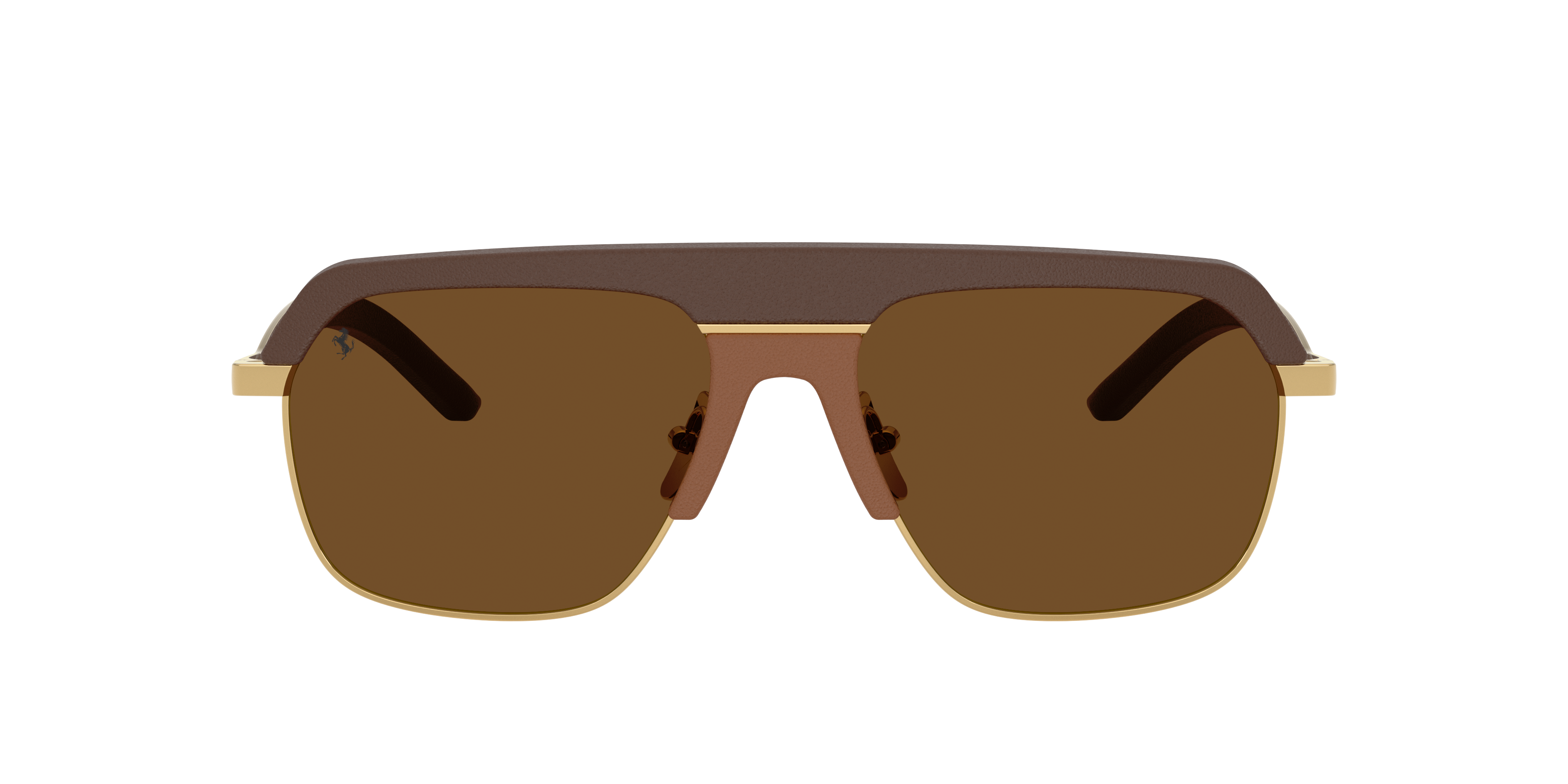 Elevate your style with Ferrari FH1026Q, a pair of sunglasses that are designed for unisex. The metal frame in matte moretto finish features a unique pillow shape, offering a contemporary twist to the traditional design. The solid color brown polarized lenses not only provide excellent clarity but also reduce glare for optimal vision. These shades are polarized, enhancing their practicality and versatility. Embrace the timeless appeal of Ferrari while making a fashion-forward statement.