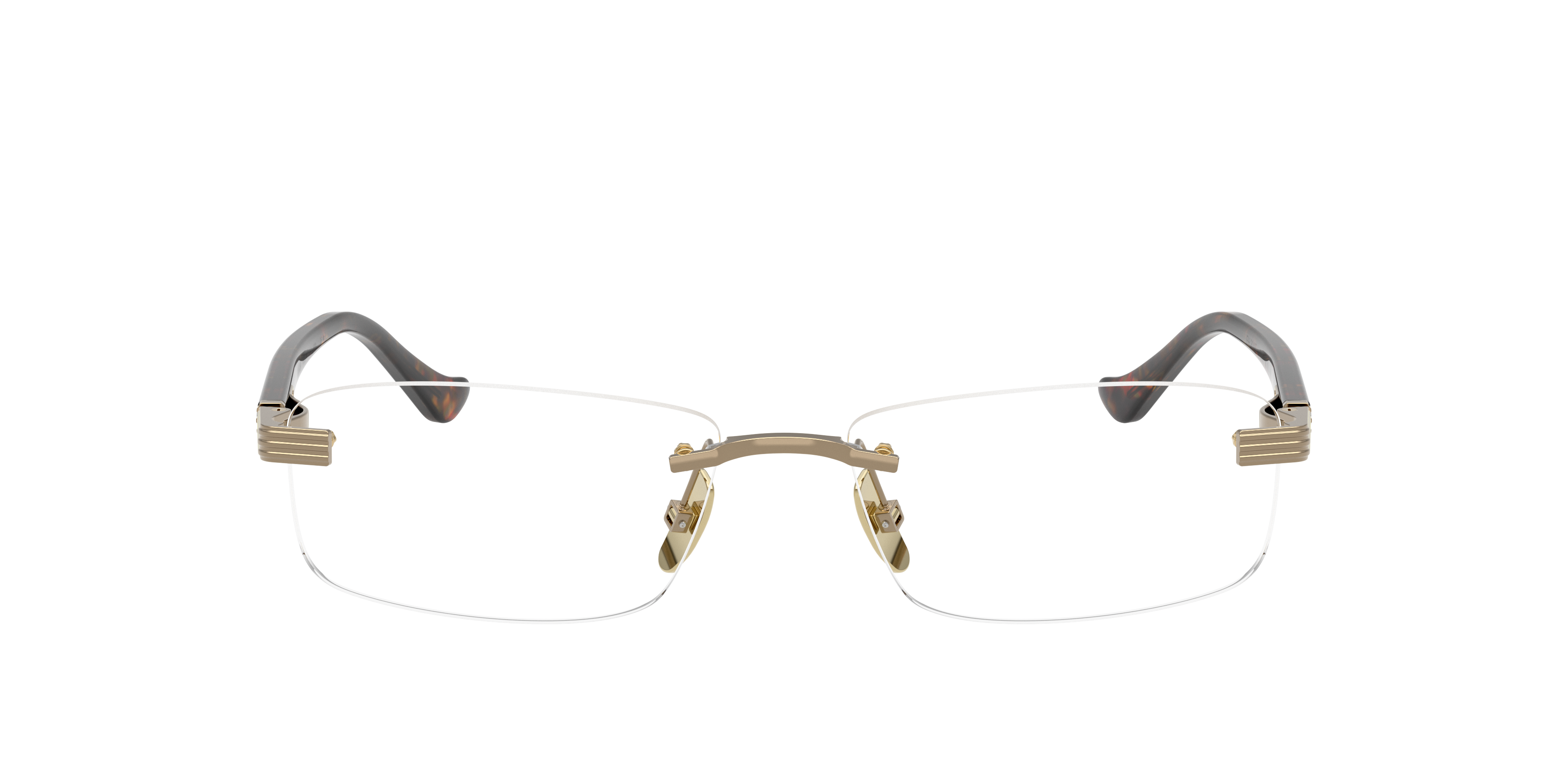 Experience modern sophistication with the Ferrari FH3013T optical glasses. The pillow-shaped titanium frames offer a perfect blend of lightweight durability and premium craftsmanship. An innovative beta titanium flex hinge adds a cutting-edge touch, while frames with adjustable nosepads ensure tailored comfort. Finished with a luxe gold frame front and clear lenses, these rimless Ferrari glasses exude timeless elegance.
