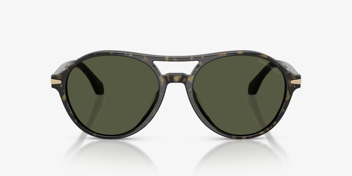 With their round shape and polished green havana acetate frame, Giorgio Armani AR8236U sunglasses are a perfect blend of style and comfort. The solid color green lenses add a pop of color to the overall design while providing excellent protection from the sun's rays. These shades are a versatile choice for any fashion-forward individual.