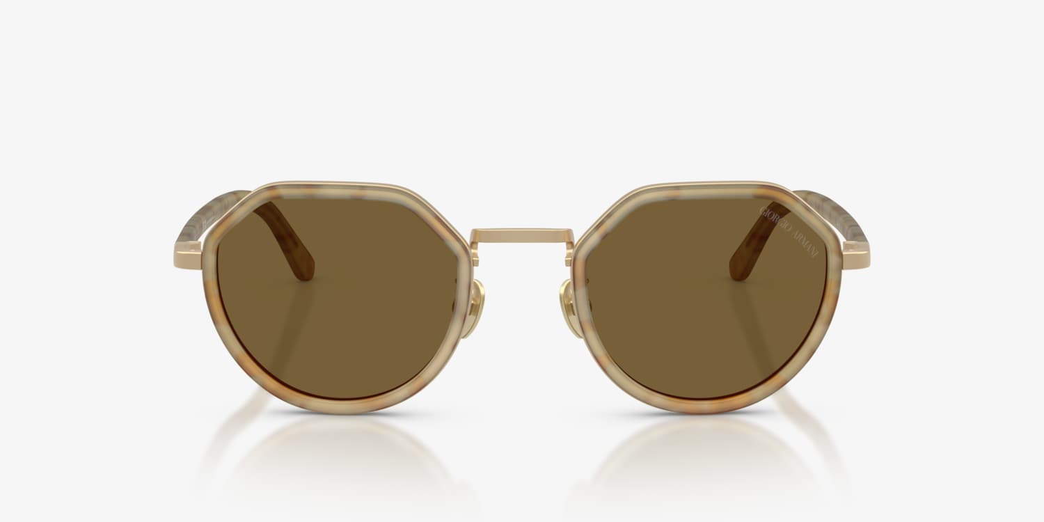 Elevate your style with the Giorgio Armani AR6181 sunglasses. These round sunglasses, crafted from lightweight metal, showcase a timeless retro-inspired design, synonymous with sophistication and artistry. Finished with tortoise-hued rims and brown lenses, they exude vintage allure, while adjustable nosepads ensure a refined fit. Acetate temples, accented with the iconic Giorgio Armani logo, add a polished touch to this elegant archival revival. Perfect as Giorgio Armani sunglasses for men seeking classic elegance.