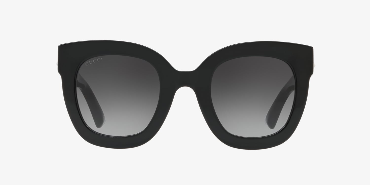 Elevate your fashion while optimizing utility with Gucci GG0208S. These oval-shaped sunglasses feature a polished black shiny acetate frame that is both durable and lightweight. The grey gradient lenses not only provide excellent protection against the sun but also add a touch of sophistication to these shades. Embrace the timeless allure of Gucci with these exquisite sunglasses. Available with prescription lenses.