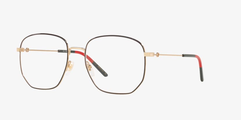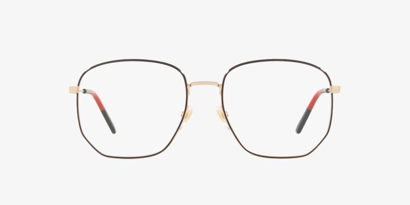 Elevate your style with Gucci GG0396O eyeglasses. The pilot shape, crafted from durable metal, is a timeless and versatile choice for all face shapes. The gold frame color adds a touch of luxury to these glasses, making them an ideal accessory. Embrace the sophistication and elegance of Gucci GG0396O. Available with prescription lenses.