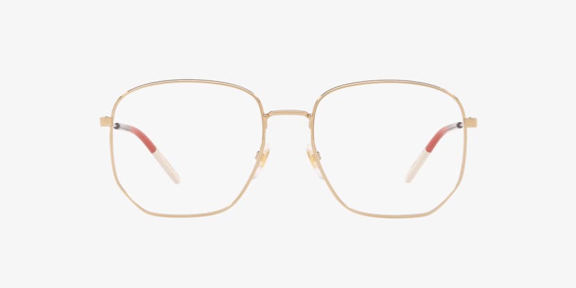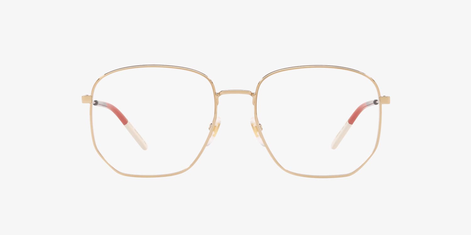 Experience the epitome of sophistication with Gucci GG0396O eyeglasses. Crafted from durable metal, these pilot-shaped glasses feature a polished finish in a shiny gold color that exudes timeless elegance. The black frame color adds a touch of sophistication, making these shades a versatile accessory for any occasion. Embrace the synergy of style and comfort with Gucci GG0396O eyewear. Available with prescription lenses.