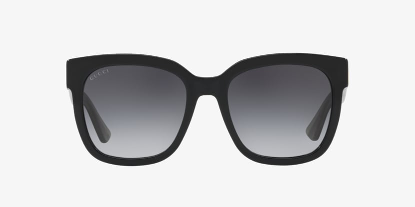 Elevate your style with Gucci GG0034SN sunglasses. These glasses feature a polished black acetate frame in a rectangle shape, offering a sophisticated and modern look. The gradient grey lenses add a touch of elegance to the overall design and provide excellent sun protection. Embrace the synergy of fashion and functionality with these stunning shades. Available with prescription lenses.