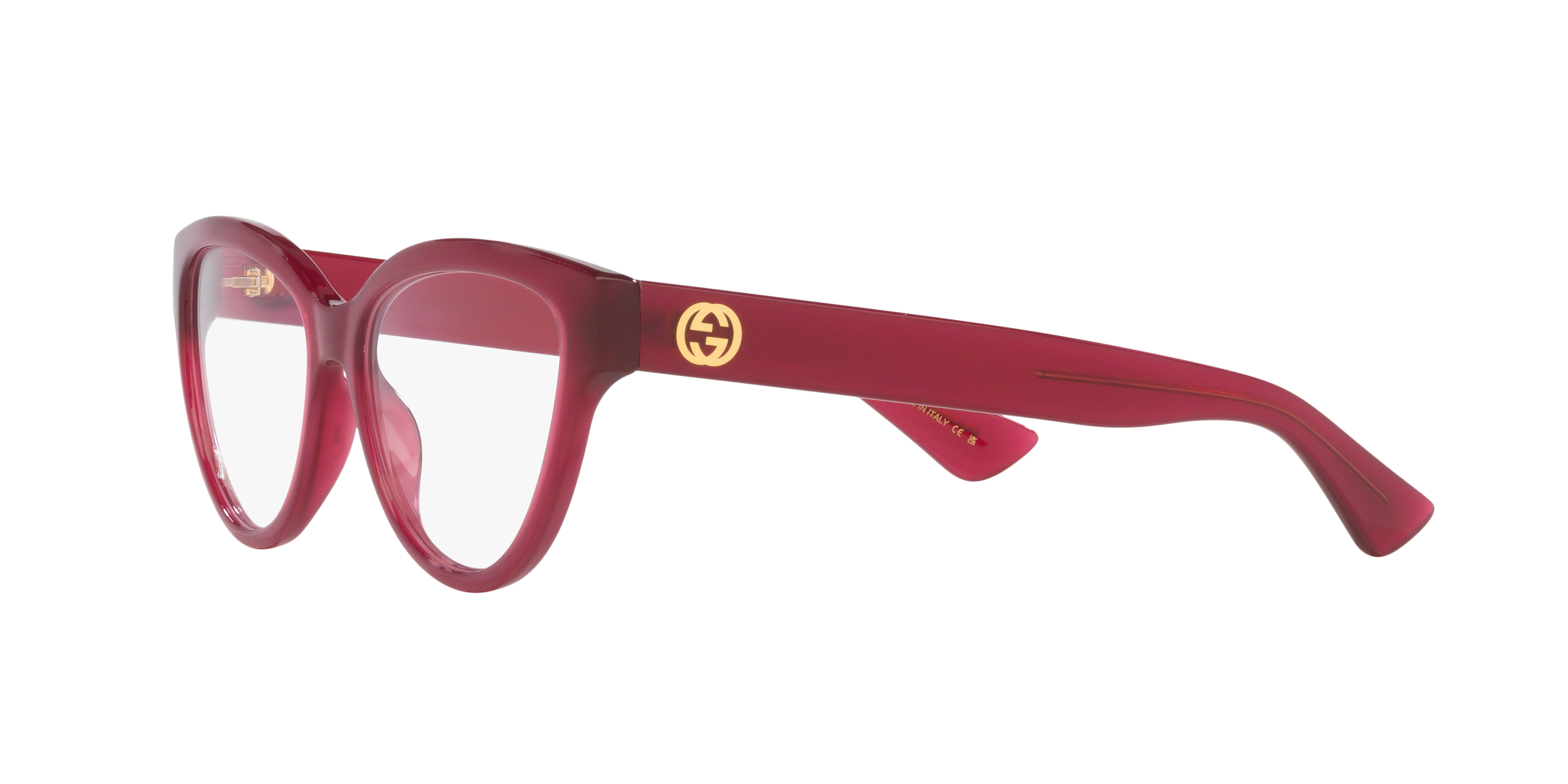 Gucci GG1581O eyeglasses seamlessly integrate fashion and functionality. These round-shaped frames are crafted from polished pink acetate, offering a playful yet sophisticated look. The black color details on the temples add a touch of elegance to these glasses. These frames are not only stylish but also versatile, making them an excellent choice for everyday wear.