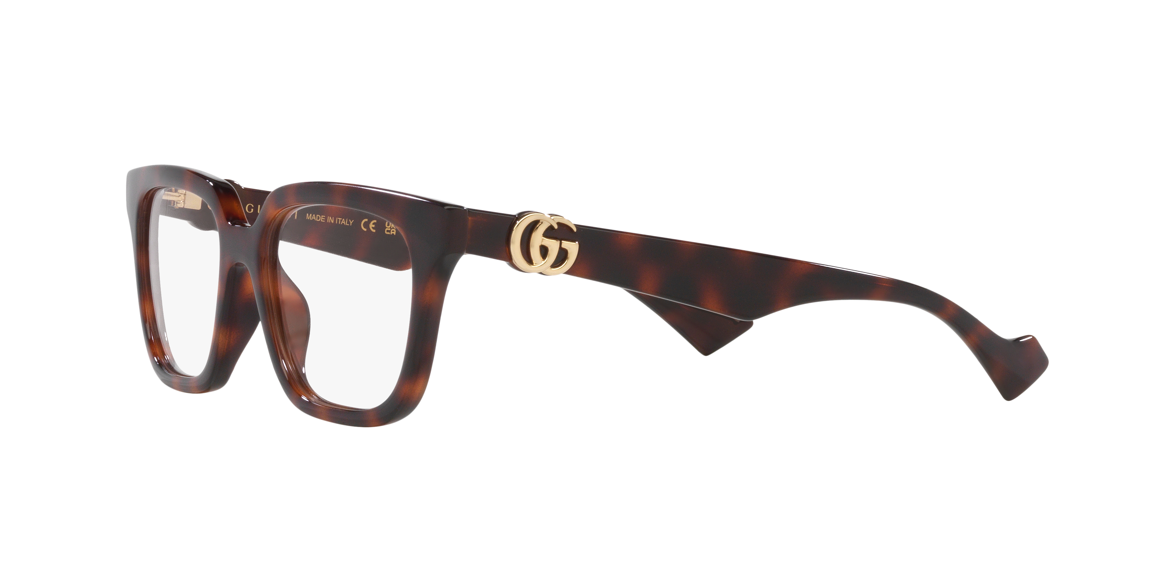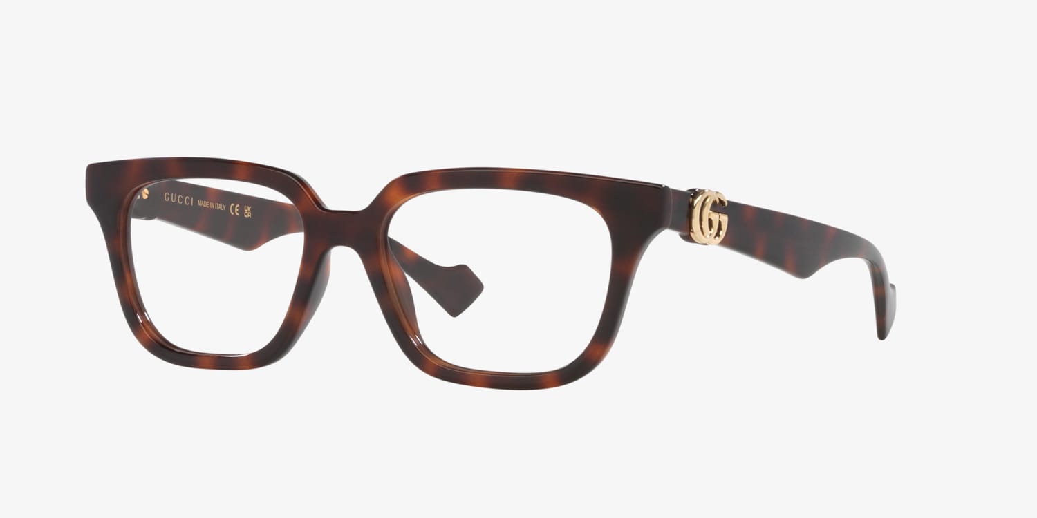 Embrace the trend and sophistication with Gucci GG1536O optical frames. The cat eye shape adds a touch of vintage glamour, while the polished tortoise tan frame color finish gives these glasses a modern twist. These shades are not just stylish but also practical. Embrace your unique style with these exquisite glasses from Gucci.