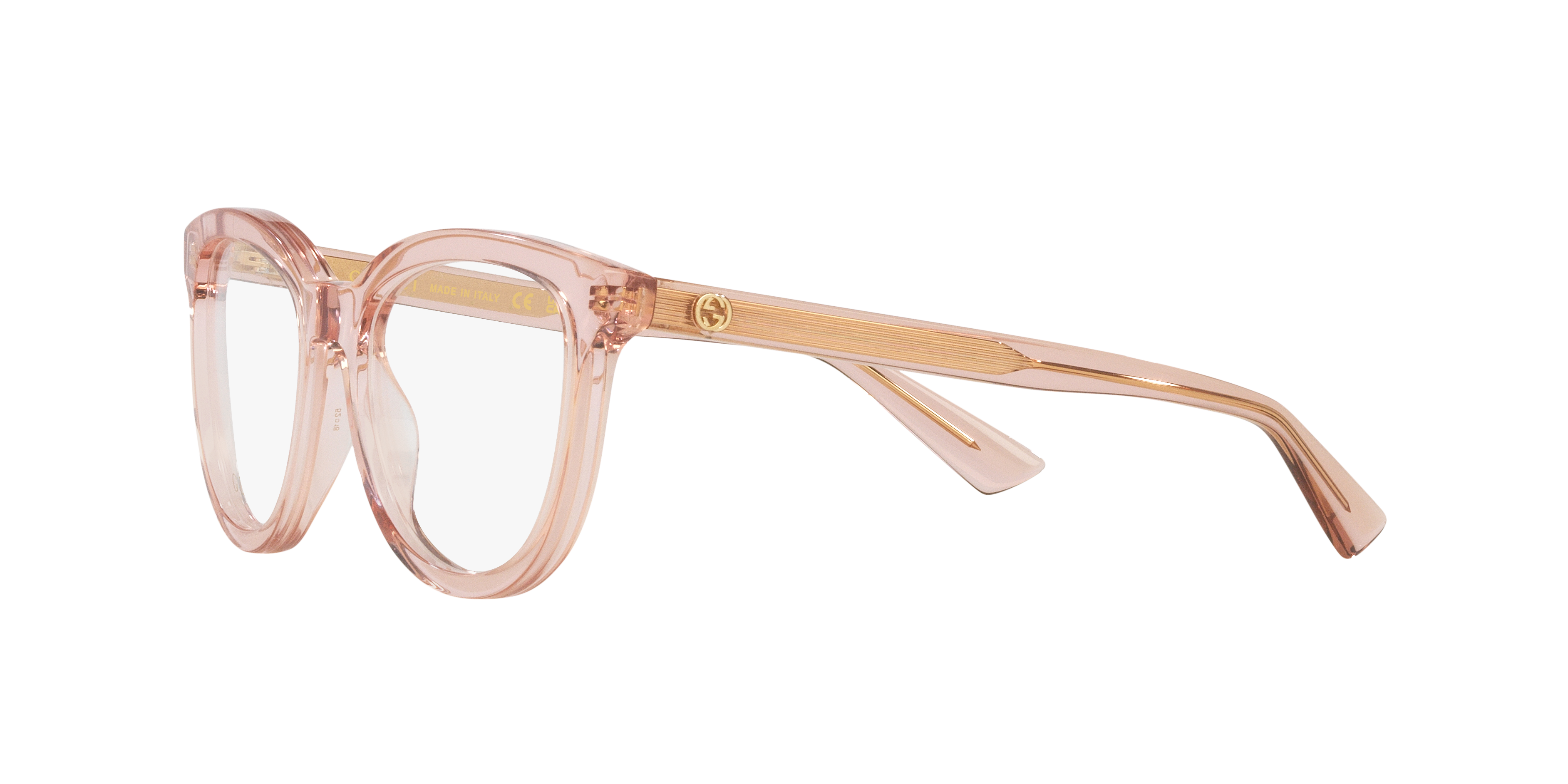 Elevate your look with Gucci GG1687O eyeglasses. The cay-eye shape and polished finish give these frames a vintage yet modern appeal. Crafted from durable acetate, the pink color adds a pop of color to any outfit. These glasses are not only stylish but also practical. Embrace timeless elegance with Gucci GG1687O eyeglasses.