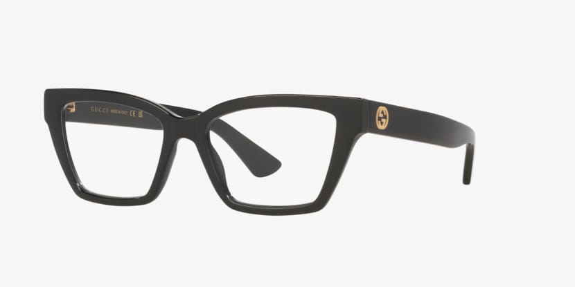 Experience the interplay of style and optical functionality with Gucci GG1715O eyeglasses. These cay-eye frames are crafted from polished black acetate, offering a sleek and sophisticated look. The unique design adds a touch of elegance to your everyday wear. With its timeless appeal, these glasses are a must-have accessory for any fashion-forward individual.