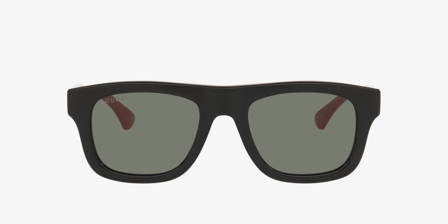 Make a bold statement with the Gucci GG1991S sunglasses. The rectangular frames feature clean lines and are crafted from durable black plastic for a sleek, structured look. Grey lenses provide advanced UVA/UVB protection while maintaining clarity with their clear lens base color. Injected temples ensure a comfortable fit, blending style and practicality effortlessly. A refined choice for modern sophistication, these black sunglasses embody timeless elegance.