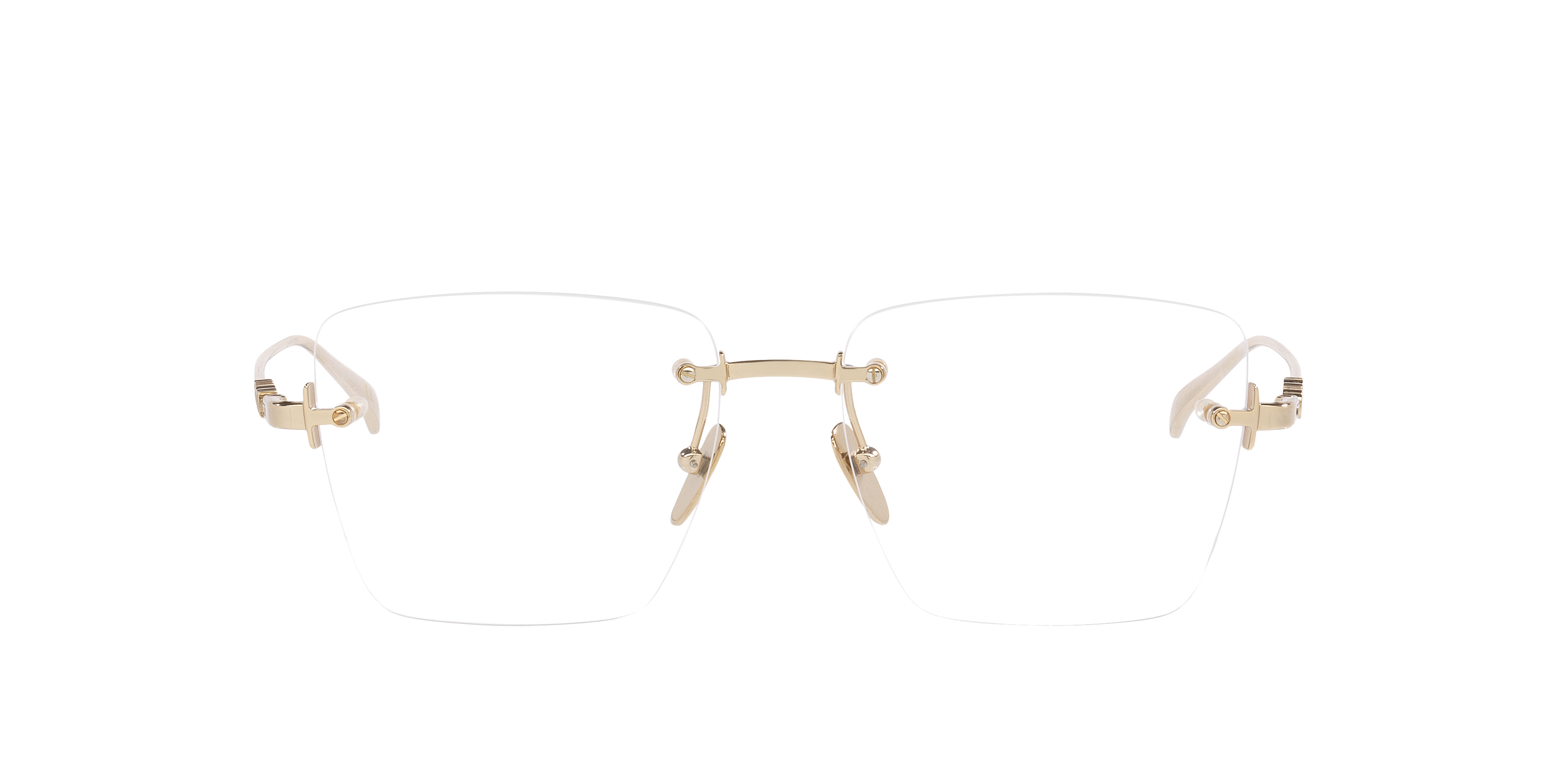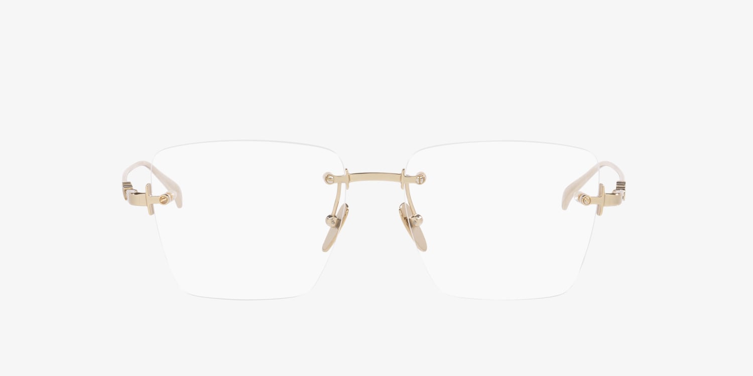 Experience timeless elegance with the Gucci GG1938O optical glasses. The rimless rectangular frames exude a minimalist charm while delivering modern sophistication. Crafted from lightweight metal for impeccable comfort, they feature gold accents that add a refined touch. Finished with clear lenses, these Gucci eyeglasses are the ultimate blend of style and functionality.