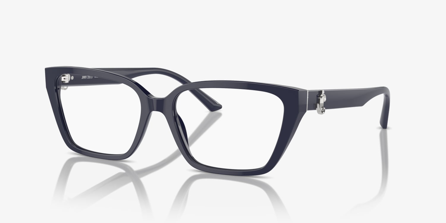 Elevate your fashion and vision integration with Jimmy Choo JC3008 optical glasses. These cat eye-shaped frames are crafted from durable acetate, offering a comfortable fit and superior optical clarity. The polished blue finish adds a touch of sophistication to any look. Embrace the effortless style of Jimmy Choo with these chic glasses. Available with prescription lenses.