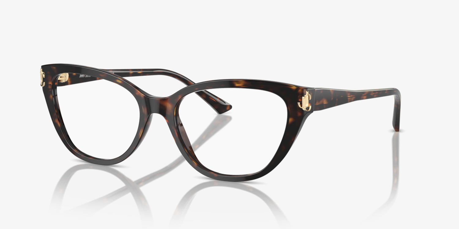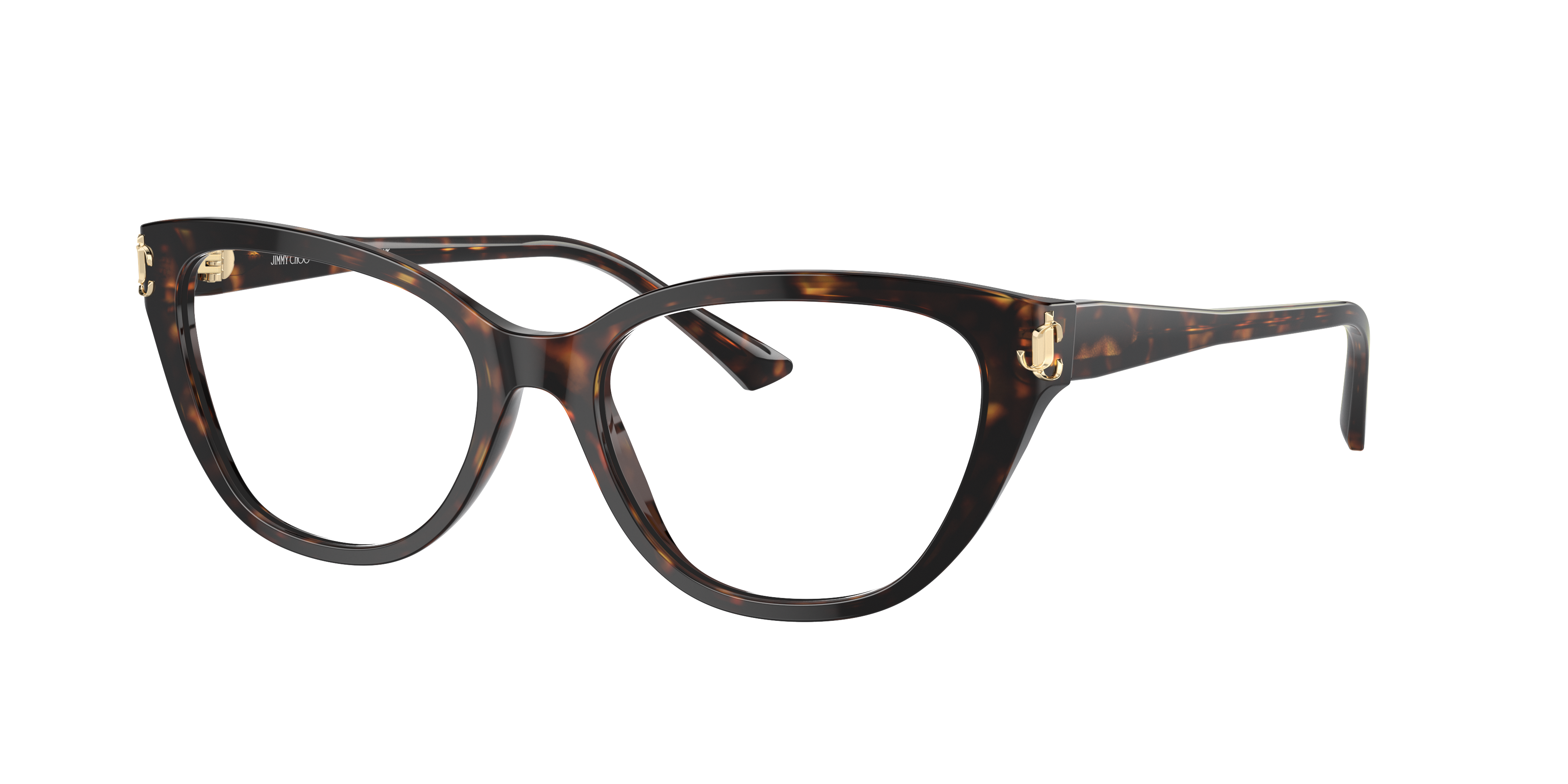Enhance your style and elevate your look with the Jimmy Choo JC3011 cat eye-shaped glasses. These frames, made of shiny havana acetate, exude elegance and sophistication. The distinctive design is sure to catch attention, helping you stand out in any crowd. Embrace your personal style while enjoying enhanced vision with these stunning shades. Available with prescription lenses.