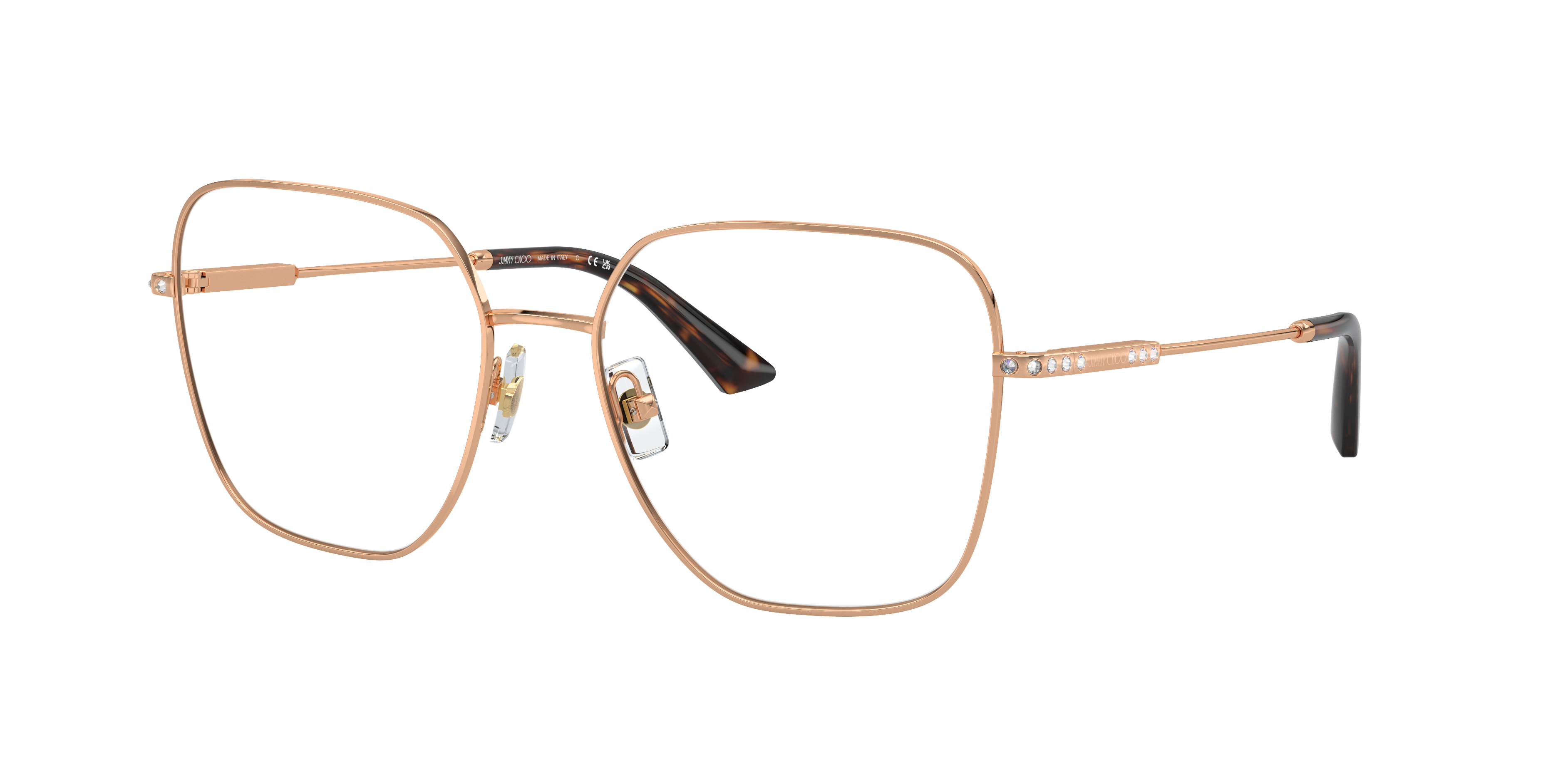 Elevate your fashion while optimizing utility with Jimmy Choo JC2001B Optical. The square shape and polished rose gold frame, crafted from durable steel, are a perfect blend of elegance and sophistication. These glasses feature strass accents on the temples, adding a touch of glamour to your look. Embrace style and comfort with these exquisite frames. Available with prescription lenses.