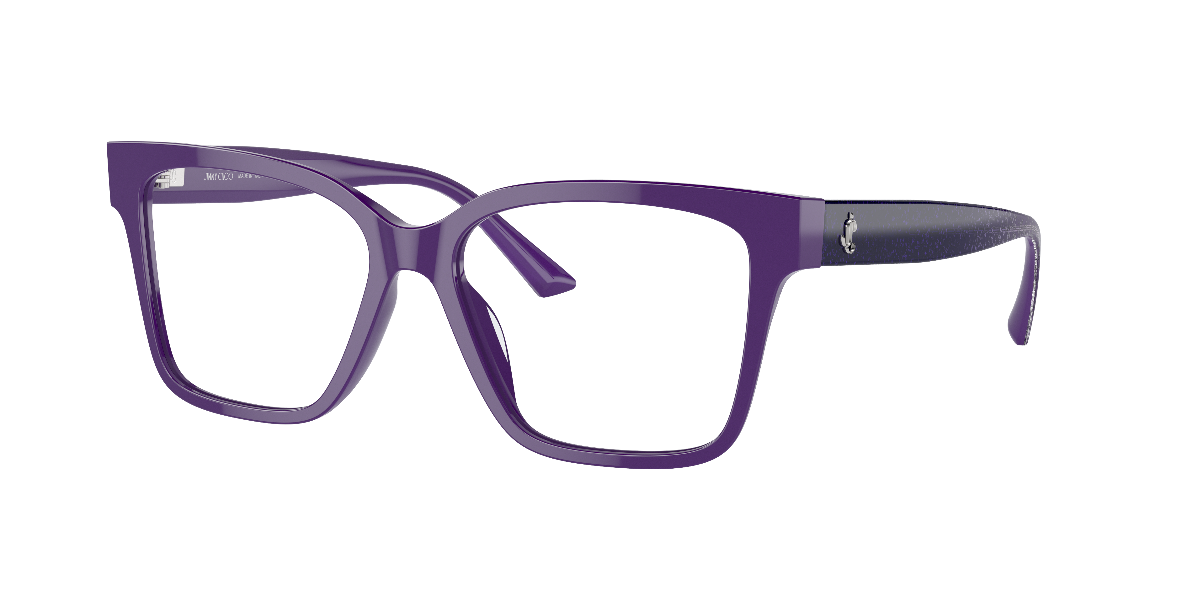 Elevate your fashion while optimizing utility with Jimmy Choo JC3006U optical glasses. These shades feature a pillow shape, crafted from high-quality acetate for durability and comfort. The frame is finished in a shiny violet color, adding a touch of sophistication to any look. Embrace the timeless appeal of these stylish frames, as well as their superior performance. Available with prescription lenses.