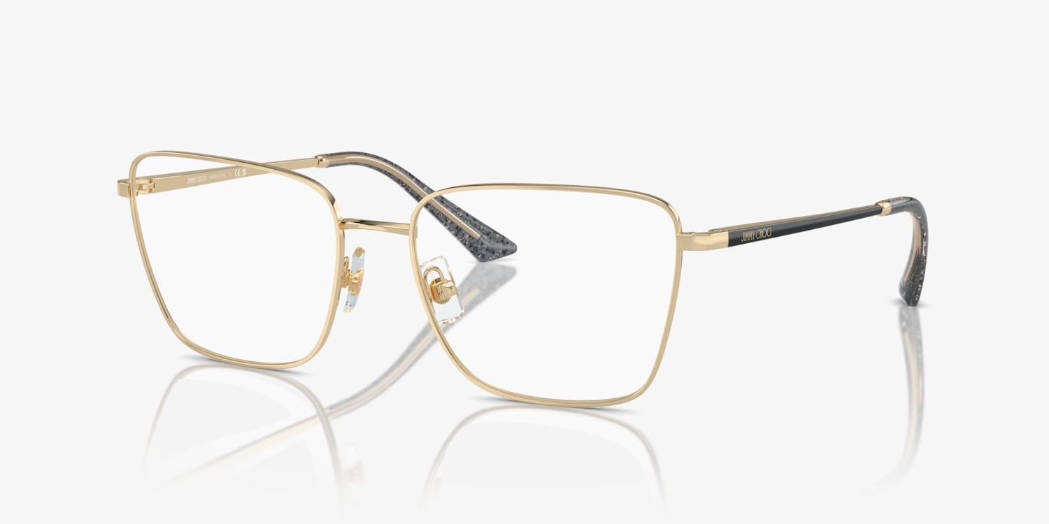 Elevate your fashion credentials with Jimmy Choo JC2003 optical glasses. The pillow shape and metal frame material exude a timeless appeal, while the shiny pale gold color adds a touch of glamour. These frames are designed to complement any outfit, making them a versatile choice for everyday wear. Embrace your unique style with these chic Jimmy Choo glasses. Available with prescription lenses.