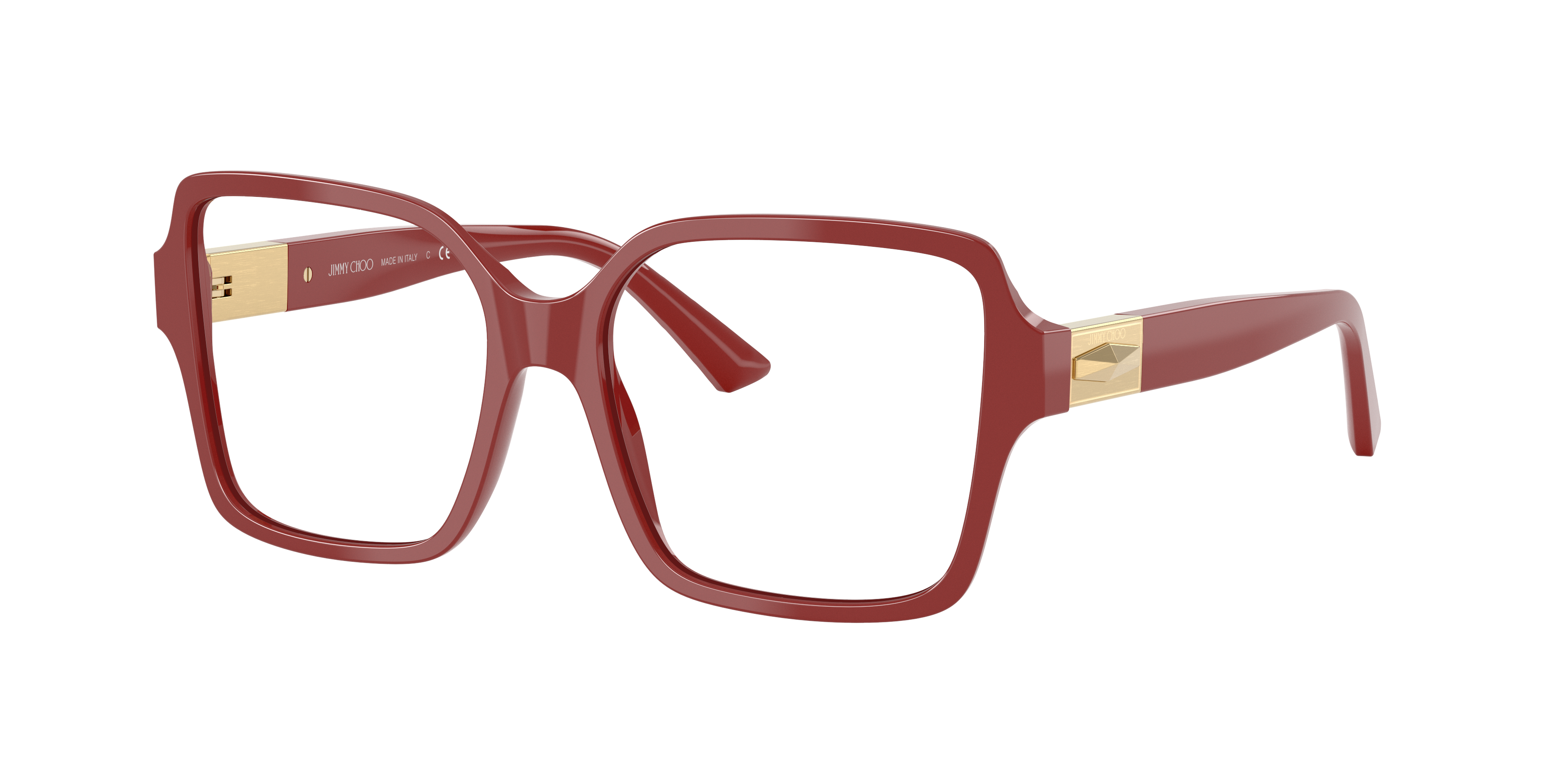Elevate your fashion and optics integration with Jimmy Choo JC3027 eyeglasses. The square shape, combined with a polished cranberry acetate frame, exudes sophistication. These glasses are not only stylish but also versatile, making them a perfect addition to any outfit. Choose this pair of frames for a look that is both elegant and timeless. Available with prescription lenses.