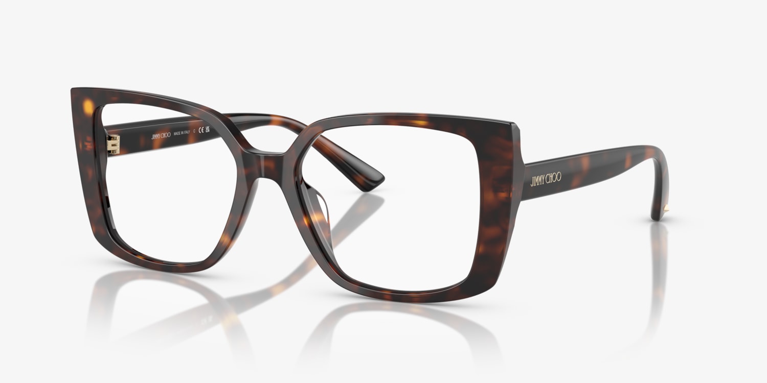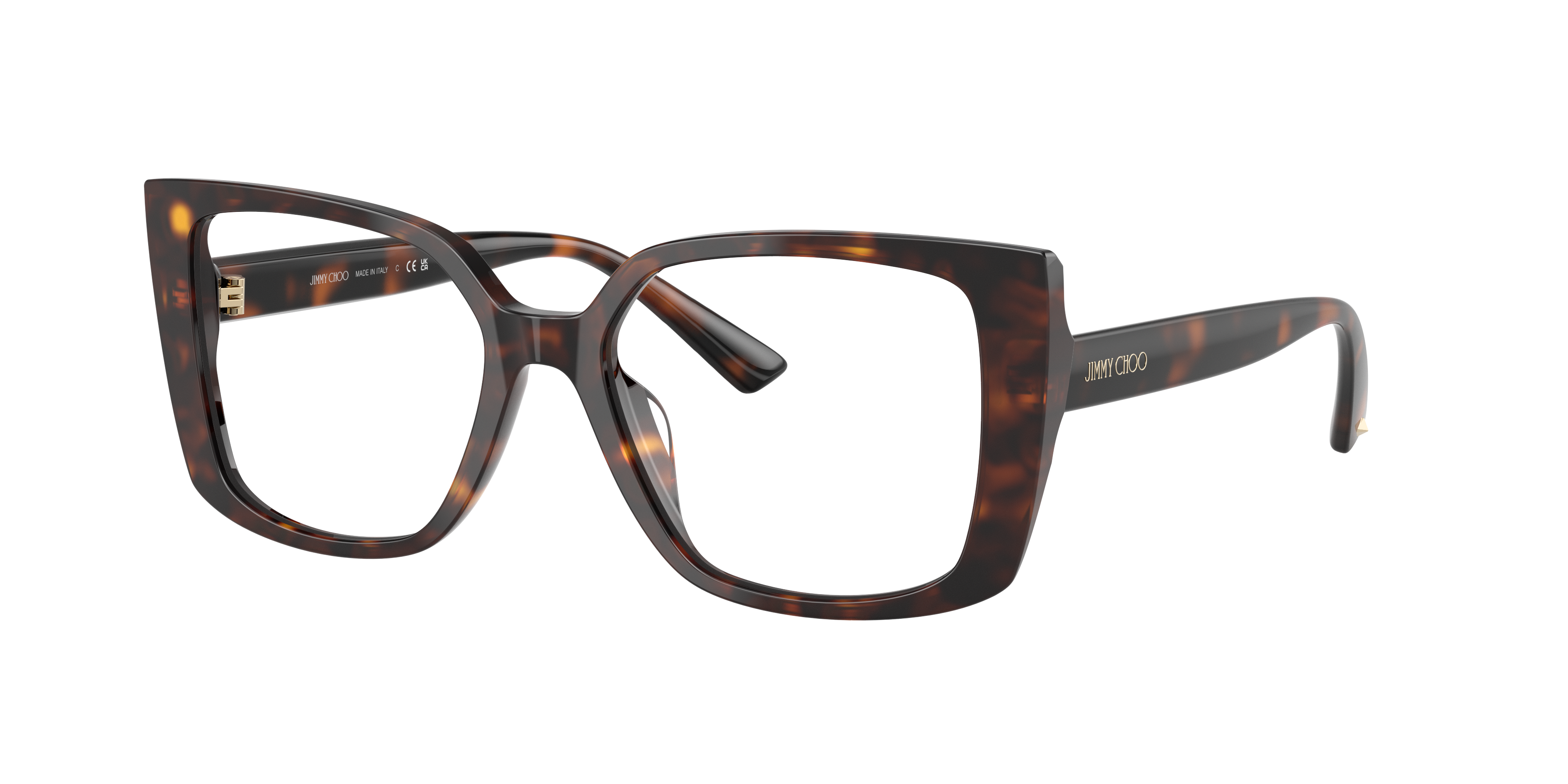 Elevate your style with Jimmy Choo JC3024U eyeglasses. The butterfly shape, paired with a polished havana acetate frame, emits a classic charm. The frame color finish is crafted to make a bold statement with the black lenses. These glasses are not just fashionable but also functional for daily use. Embrace the opulence and elegance of these Jimmy Choo frames. Available with prescription lenses.