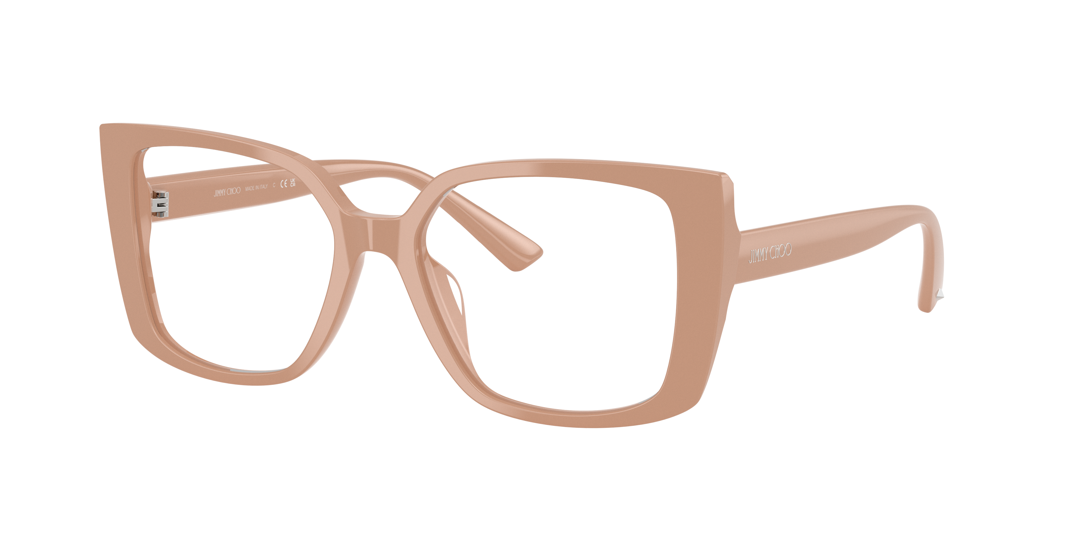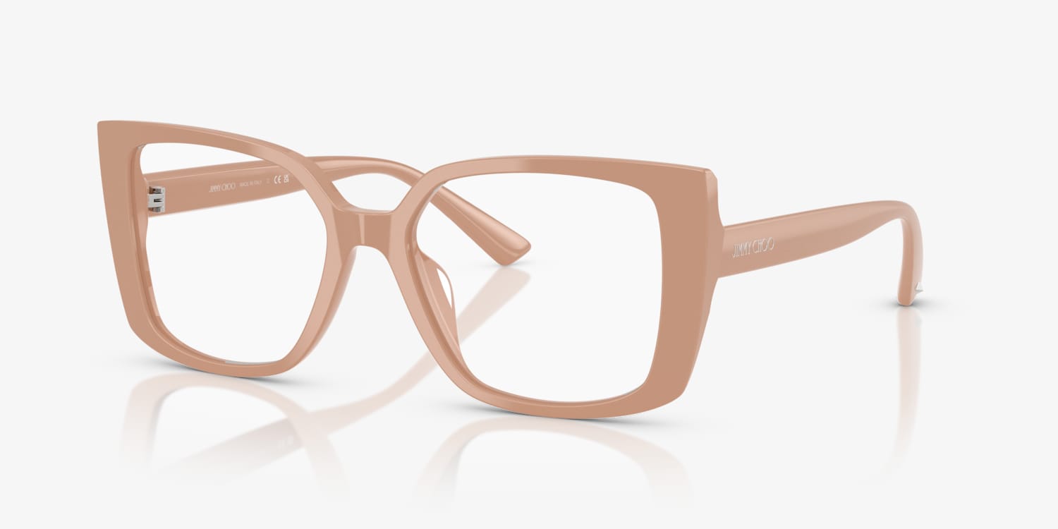 Experience the allure of Jimmy Choo JC3024U eyeglasses, a perfect blend of style and functionality. These butterfly-shaped frames are crafted from polished acetate in a vibrant pink color, adding a pop of color to any look. The frame is fitted with transparent lenses for optimal vision, making these shades ideal for everyday wear. Embrace your individuality and stand out from the crowd with these stunning Jimmy Choo glasses. Available with prescription lenses.