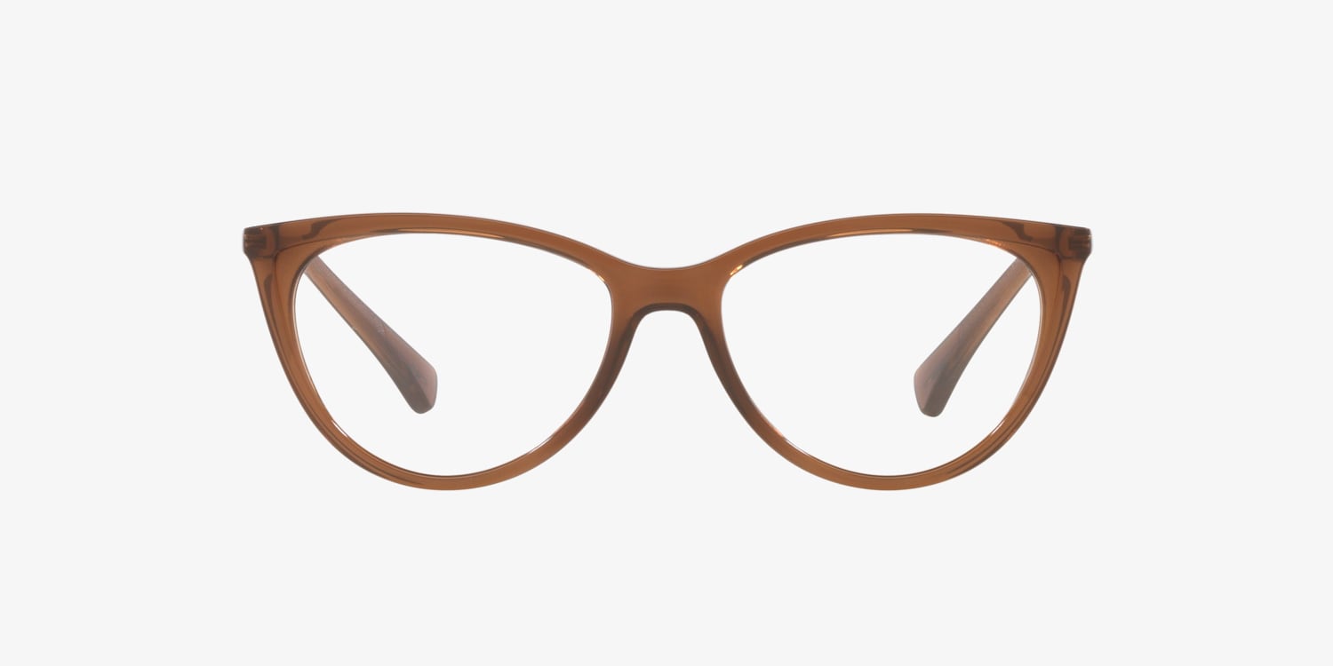 Embrace the power of optical fashion with Lenscrafters EC3504. The polished, shiny transparent brown frame in a cay-eye shape exudes elegance and sophistication. These glasses features a unique design that is sure to turn heads and make a statement. With these frames, you can enjoy both style and functionality. Available with prescription lenses.