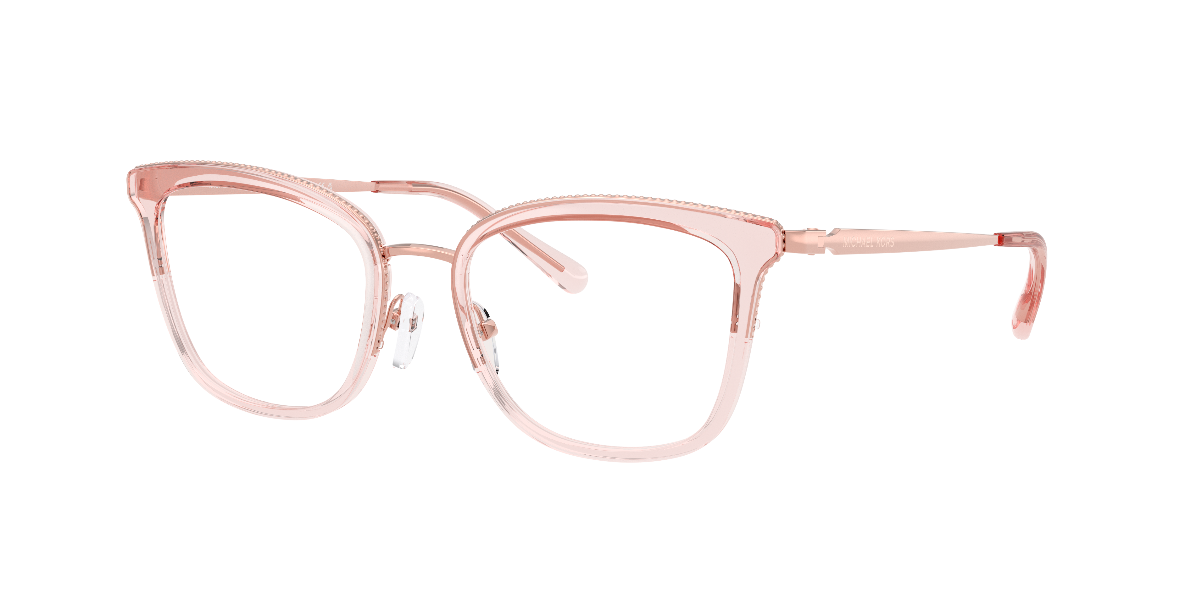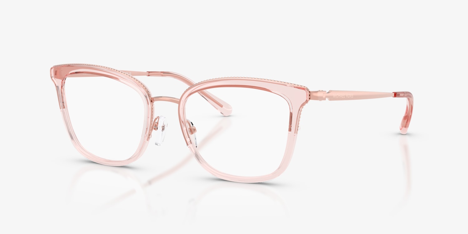Elevate your fashion while maintaining a high level of functionality with Michael Kors Coconut Grove eyeglasses. The square shape, crafted from durable metal, adds a touch of sophistication to any look. The polished rose gold/pink transparent frame color finish is unique and eye-catching. These glasses are designed for the fashion-forward individual who values both style and practicality. Embrace your sense of style with these versatile eyeglasses. Available with prescription lenses.