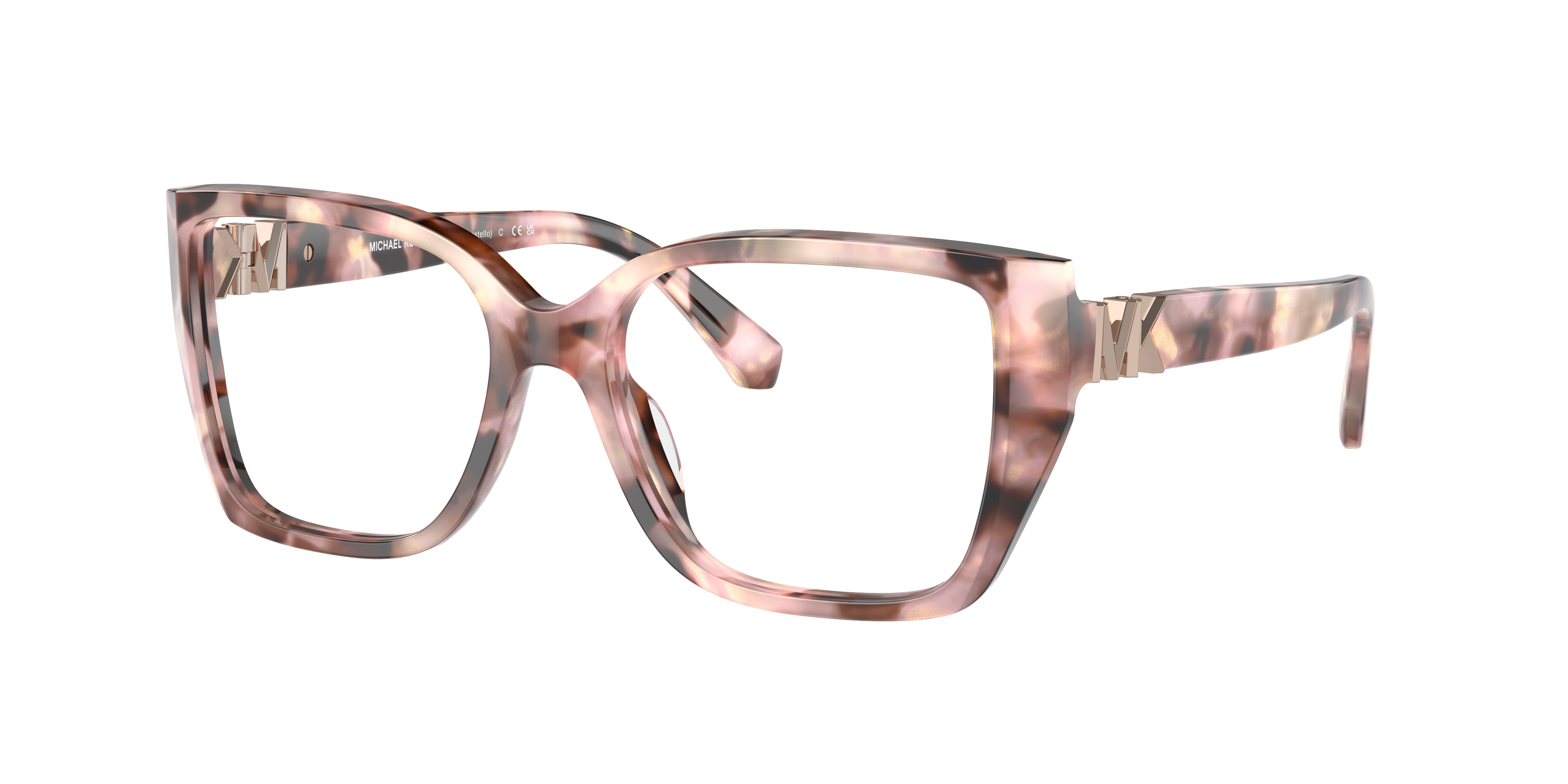 Elevate your fashion while optimizing utility with Michael Kors Castello eyeglasses. The square shape and polished finish give these frames a sophisticated, modern appeal. Crafted from durable acetate in a striking pink pearlized tortoise color, these glasses are as versatile as they are stylish. Embrace the power of optical fashion with Michael Kors Castello. Available with prescription lenses.