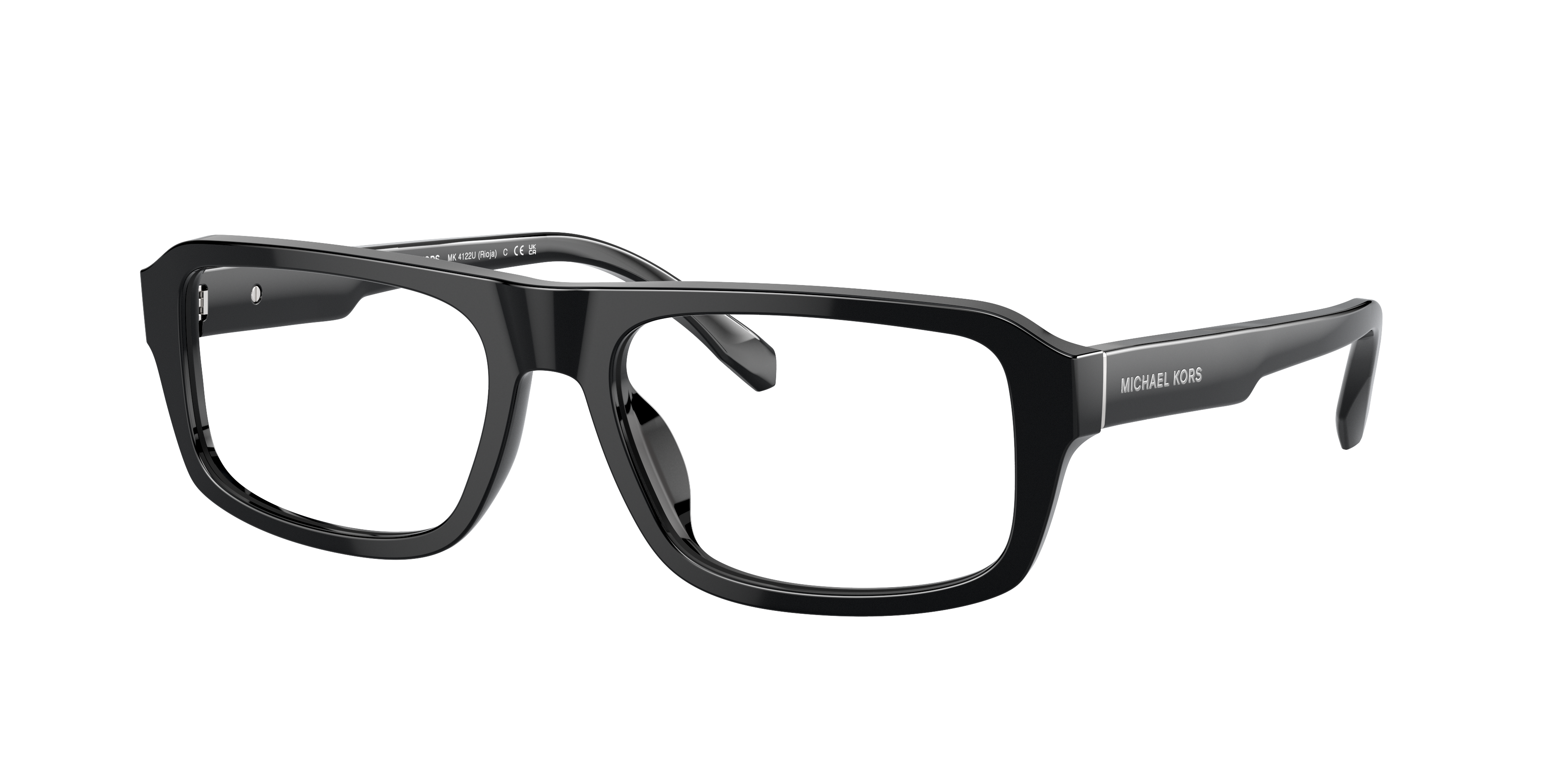 Embrace the unique style of Michael Kors Rioja optical glasses. The irregular shape and polished black acetate frame offer a modern twist on a traditional design. These frames feature a bold, yet versatile, look that is sure to turn heads. These shades are not just stylish but also practical. Experience the luxury of Michael Kors for yourself with these exquisite glasses. Available with prescription lenses.