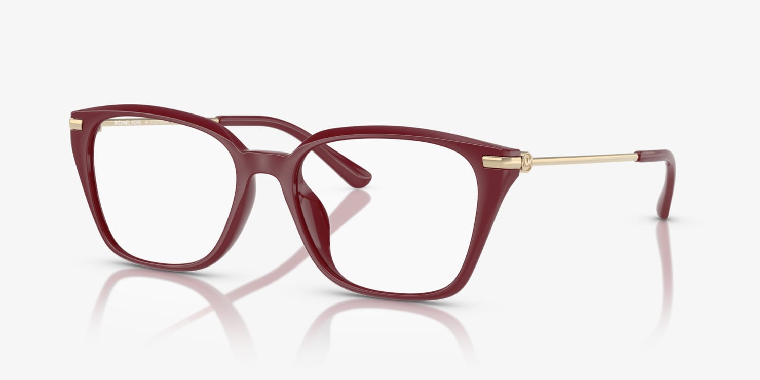 Elevate your style with the Michael Kors Hainan eyeglasses. The rectangle shape and polished deep red frame color create a sophisticated look, while the frame's unique design adds a touch of elegance. These shades are not just a fashion statement but also a practical accessory for everyday wear. Available with prescription lenses.