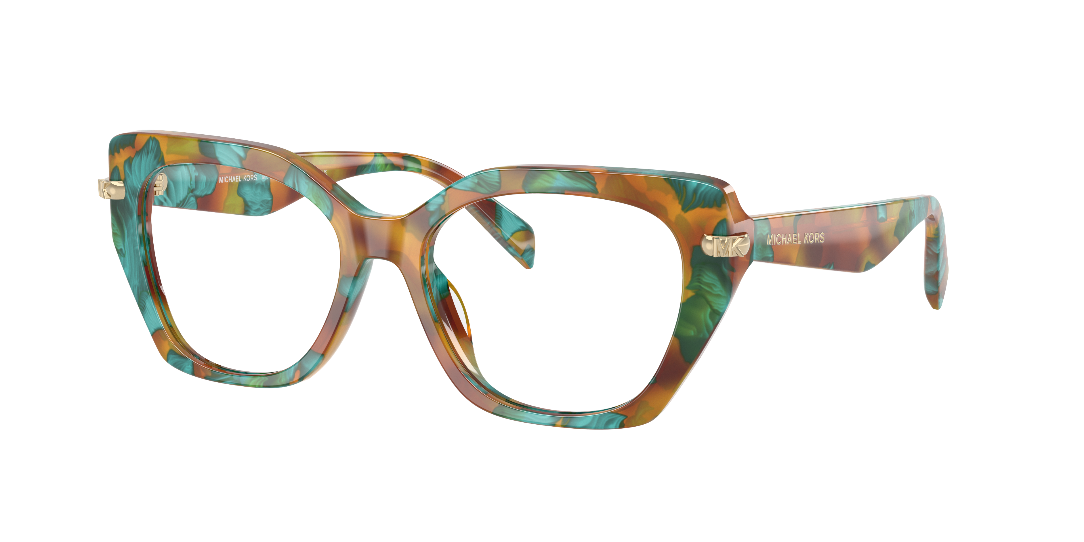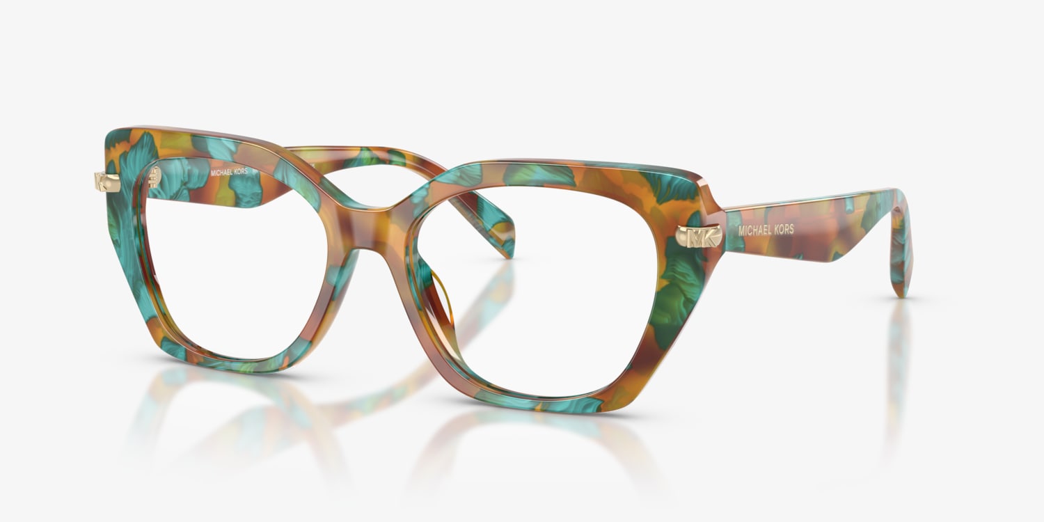 Embrace the unique style of Michael Kors Nashville, a pair of optical glasses that redefines the rules. The irregular shape and polished finish add a touch of sophistication to the playful teal graphic tortoise frame color. Crafted from durable acetate, these frames are designed to last. Experience the interplay between tradition and innovation with Michael Kors Nashville.