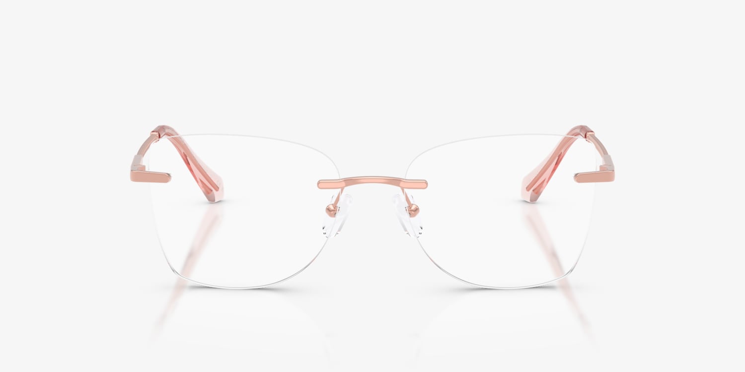 Elevate your everyday style with the Michael Kors MK3099 Nags Head optical glasses. With rimless clear lenses and lightweight metal square frames in gold, these eyeglasses with adjustable nosepads exude modern sophistication. Inspired by iconic Michael Kors jewelry, the ultra-minimal construction features an elegant compression mount attachment and delicate metal temples.