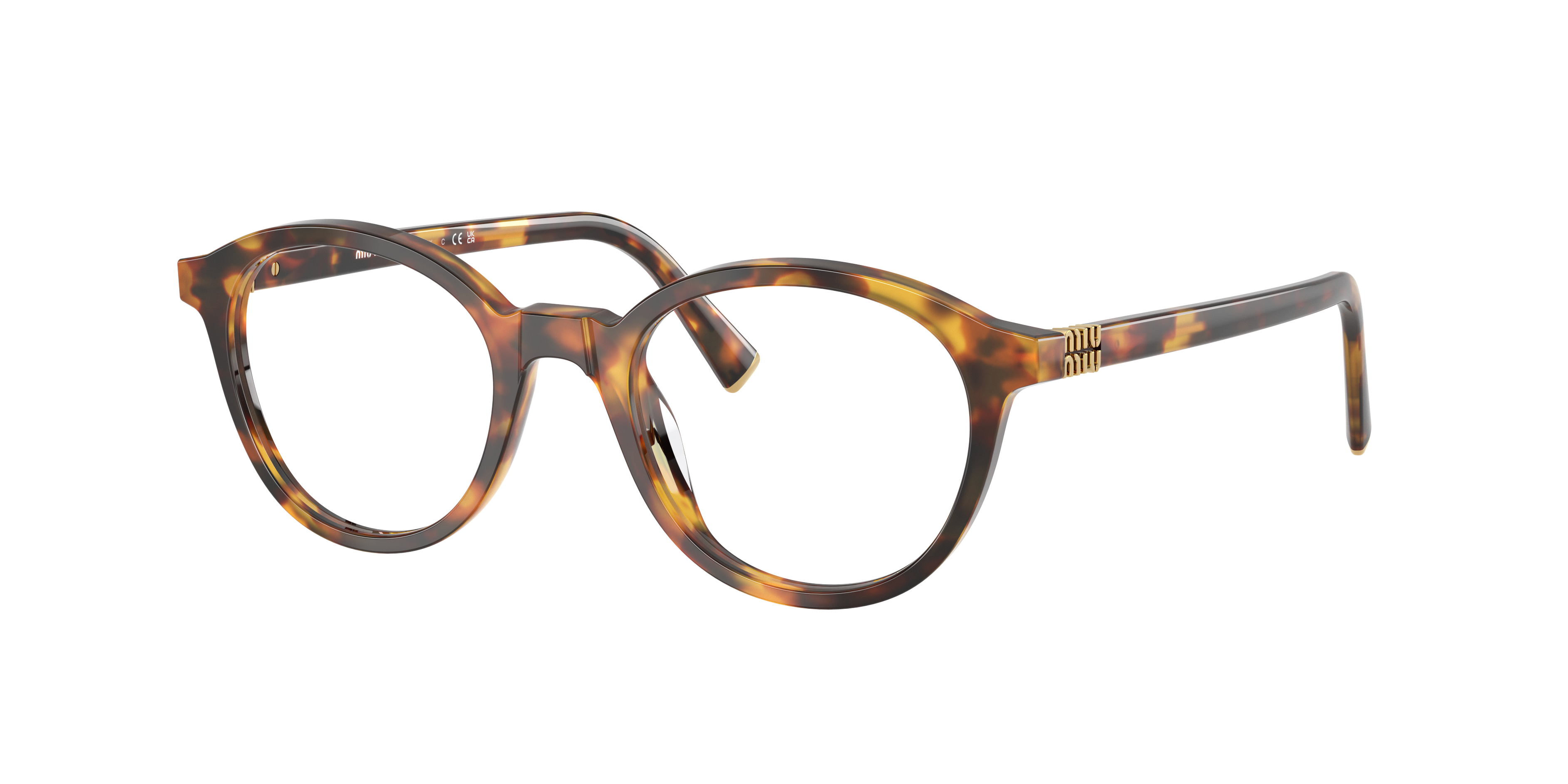 Miu Miu MU 02WVF eyeglasses are a perfect blend of style and comfort. The round shape and polished honey havana acetate frame offers a vintage yet modern look. These frames features a unique design detail, with the brand name subtly engraved on the temples. Choose these eyeglasses as your new everyday accessory. Available with prescription lenses.