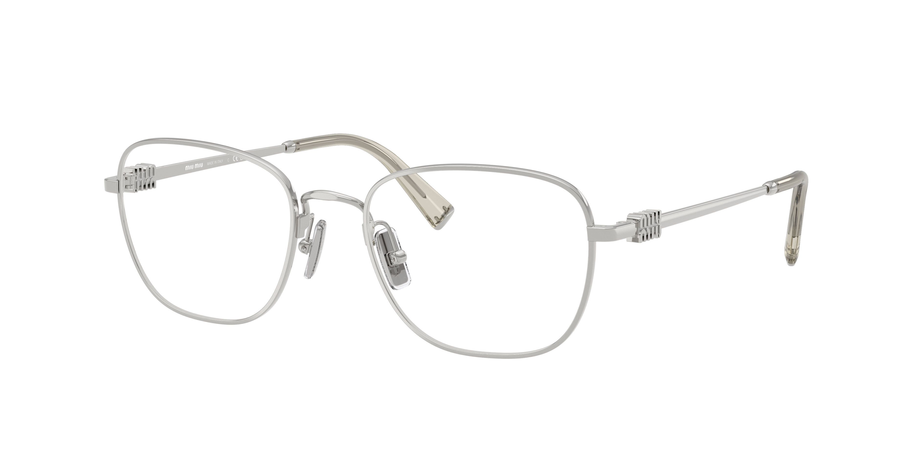 Miu Miu MU 50WV eyeglasses are a perfect blend of sophistication and style. The square shape, crafted from durable metal, offers a modern and elegant look. The polished silver frame color adds a touch of sophistication to any outfit. These glasses can be fitted with lenses of your choice, making them versatile and practical. Embrace the power of fashion with these stylish frames. Available with prescription lenses.