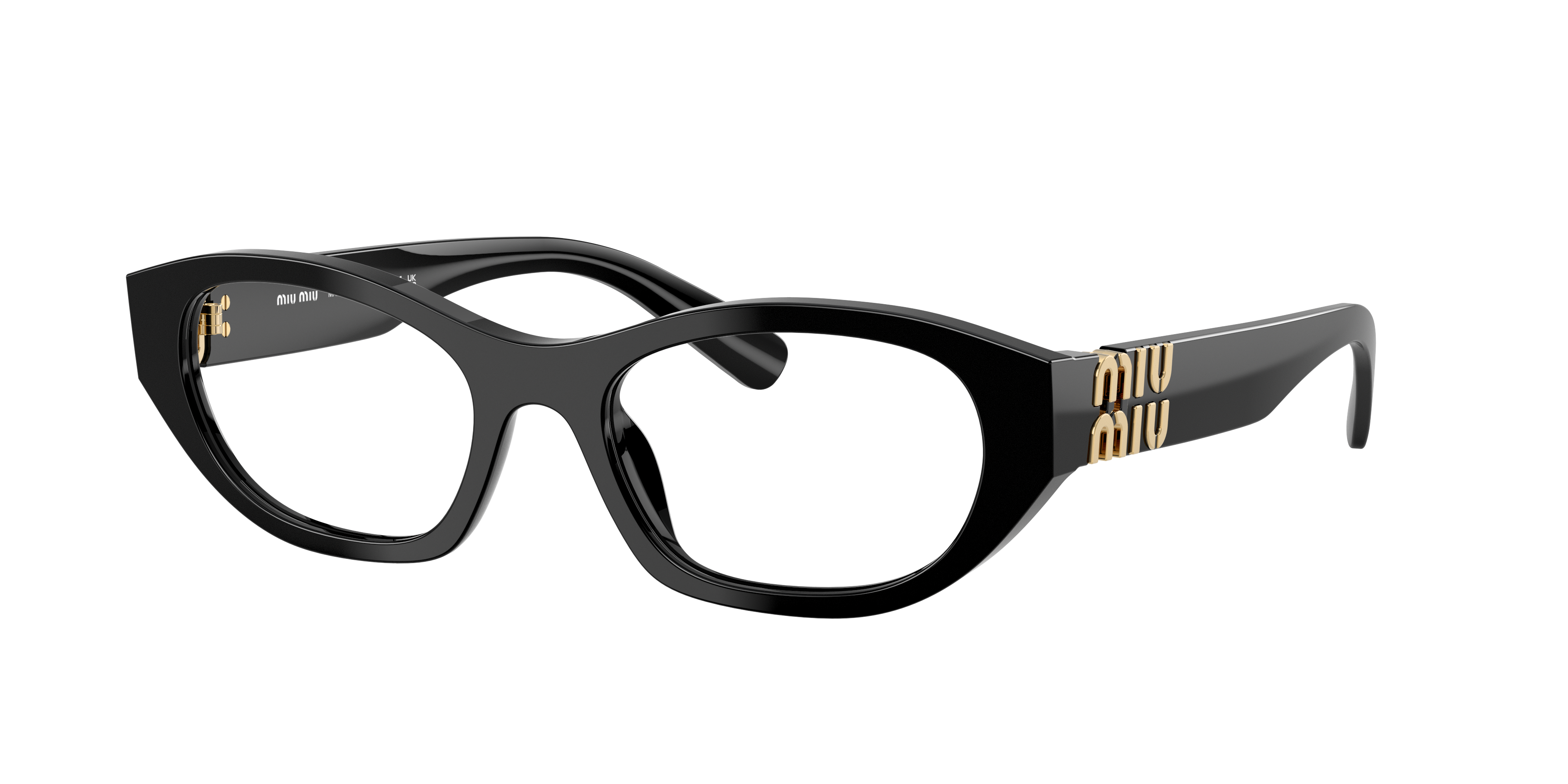 Step into the future with Miu Miu MU 03WVF eyeglasses. The irregular shape of these frames, crafted from durable acetate, adds a unique and modern touch to any look. The polished black finish of the frame color ensures a sleek and sophisticated appearance. Embrace your individuality and showcase your fashion-forward style with these stunning shades. Available with prescription lenses.