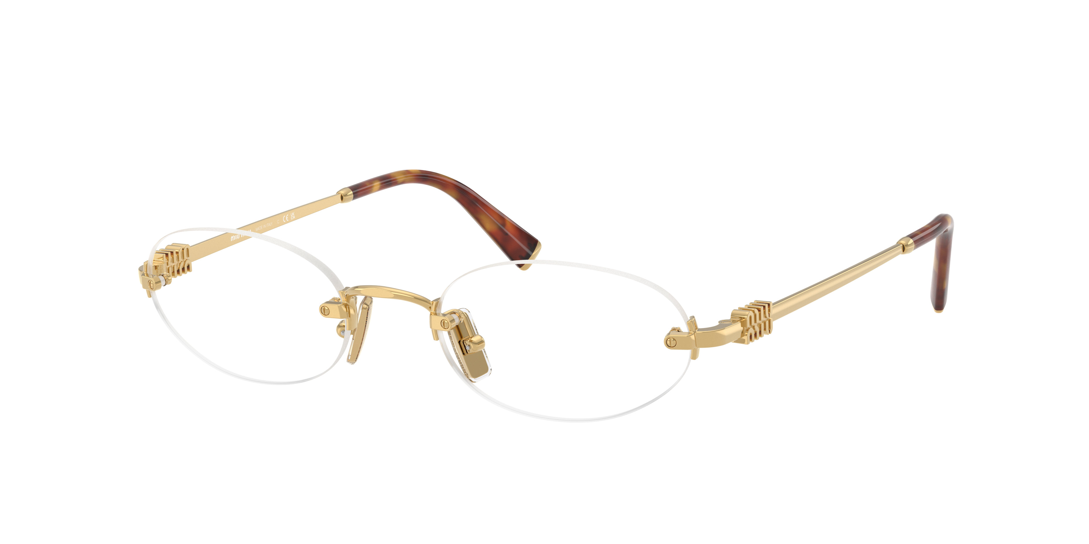Elevate your look while reading glasses with Miu Miu MU 53WV eyeglasses. The oval shape and gold metal frame, polished to perfection, exude a timeless elegance. These frames are designed to complement any outfit and are ideal for everyday wear. The solid color lenses gives them a sleek and sophisticated look. For those seeking both style and functionality, these glasses are the perfect choice. Available with prescription lenses.