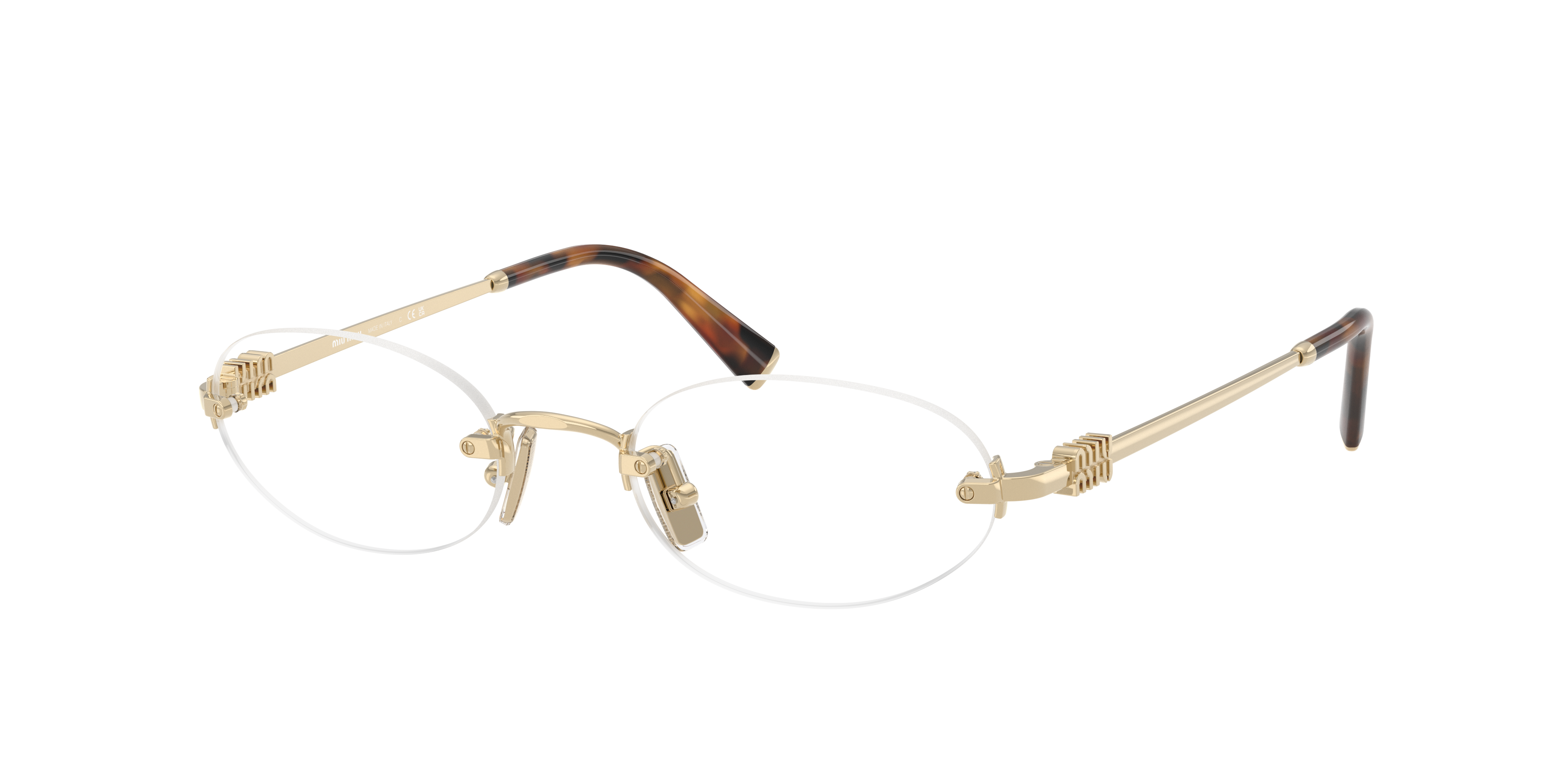 Experience the perfect balance of style and sophistication with Miu Miu MU 53WV eyeglasses. These oval-shaped frames, crafted from polished metal in a pale gold color, exude elegance and sophistication. The solid color lenses provide a sleek, modern look and ensure optimal vision clarity. Embrace your unique style and flaunt these chic frames with confidence. Available with prescription lenses.