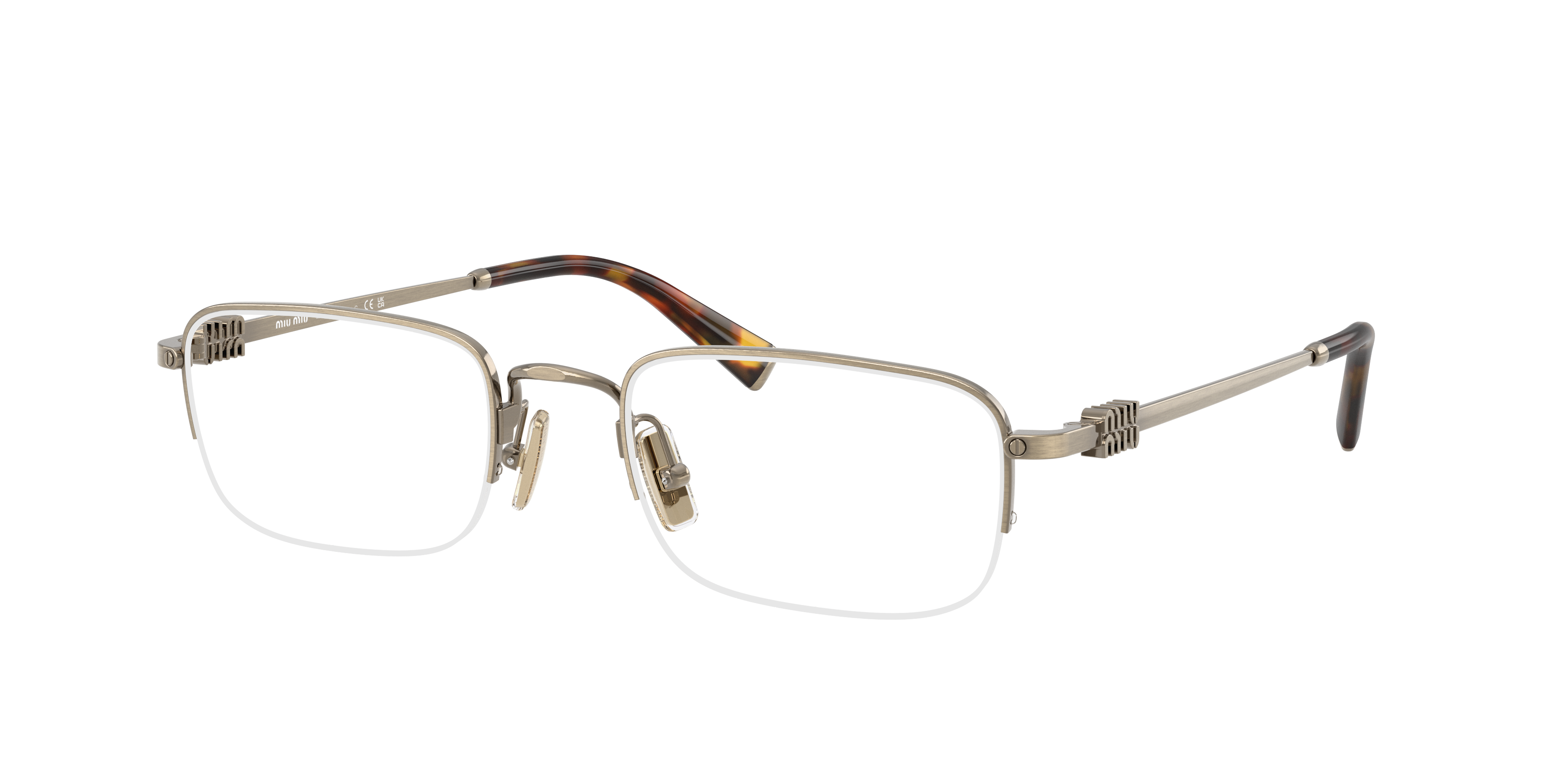 Experience the perfect balance of style and optical functionality with Miu Miu MU 52WV. These rectangle-shaped glasses features a polished metal frame in an elegant old gold color, offering a timeless look. The unique design adds a touch of sophistication to any outfit. These frames are not only stylish but also practical. With their versatile shape and durable material, they will be your go-to accessory for years to come. Available with prescription lenses.