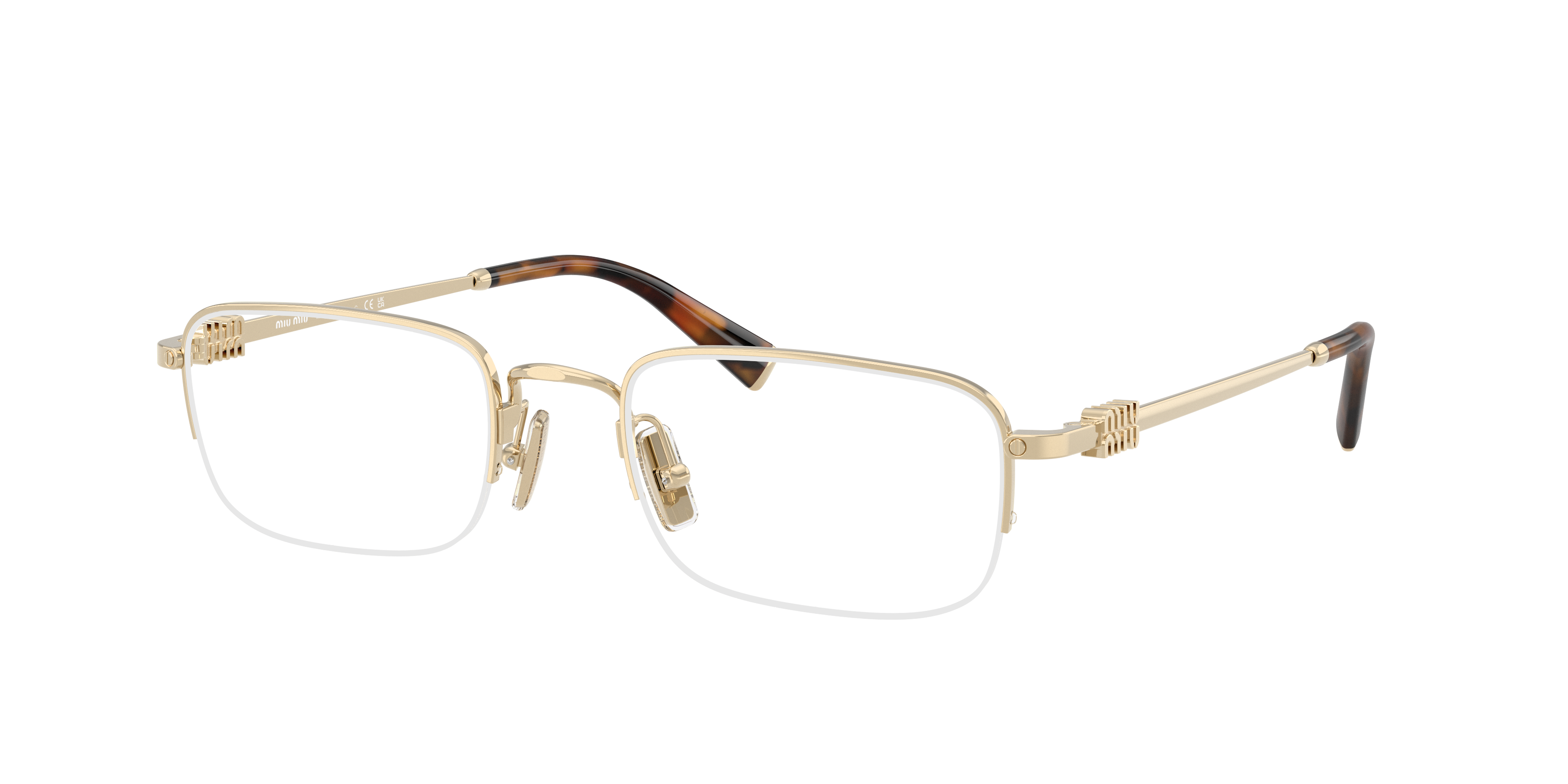 Embrace the exquisite craftsmanship of Miu Miu MU 52WV eyeglasses, a perfect blend of style and functionality. These rectangle-shaped frames are crafted from durable metal in a polished pale gold color, adding a touch of elegance to your look. The black colored lenses provide optimal vision clarity, making these glasses a versatile choice for everyday wear. Available with prescription lenses.