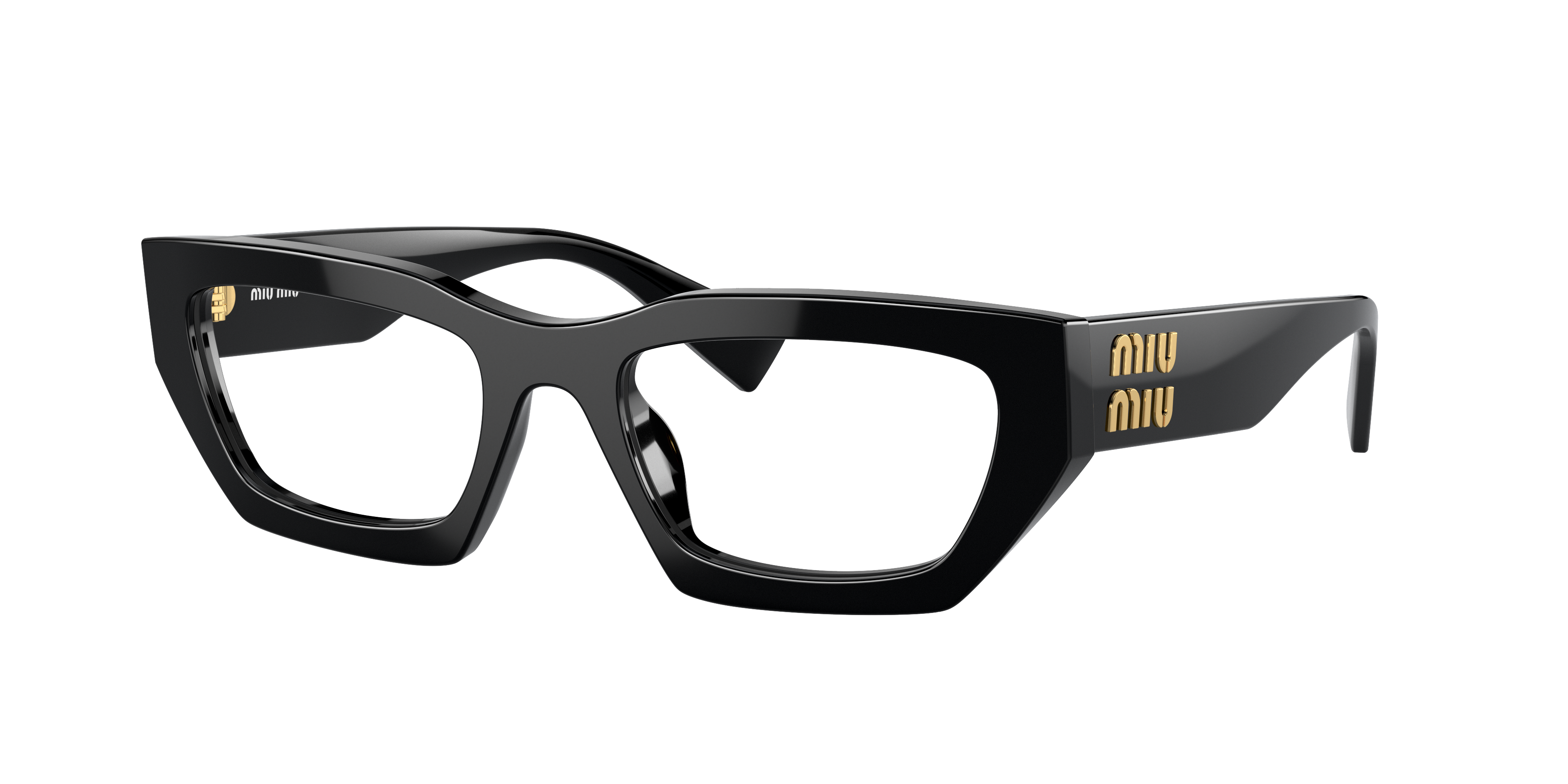 Miu Miu MU 03XV eyeglasses are designed with an irregular shape for a unique and modern look. The black acetate frame is polished to perfection, offering a sleek and sophisticated appearance. These frames features a versatile design that can be paired with any outfit. Embrace your individuality and style with these stunning glasses. Available with prescription lenses.