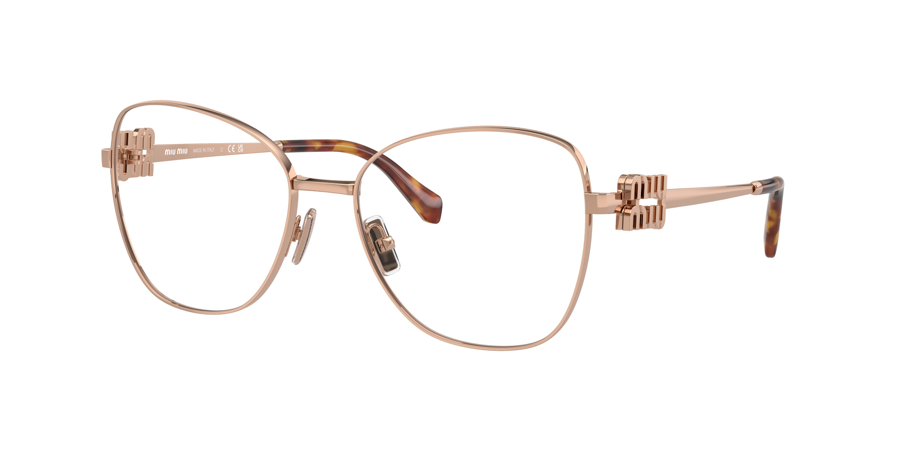 Miu Miu MU 50XV optical glasses seamlessly blend style and functionality. The pilot shape, crafted from durable metal, is a timeless choice that complements any face shape. The polished rose gold frame color adds a touch of luxury to your look. These frames are versatile and can be paired with any outfit. Embrace the sophistication and elegance of these stunning shades. Available with prescription lenses.