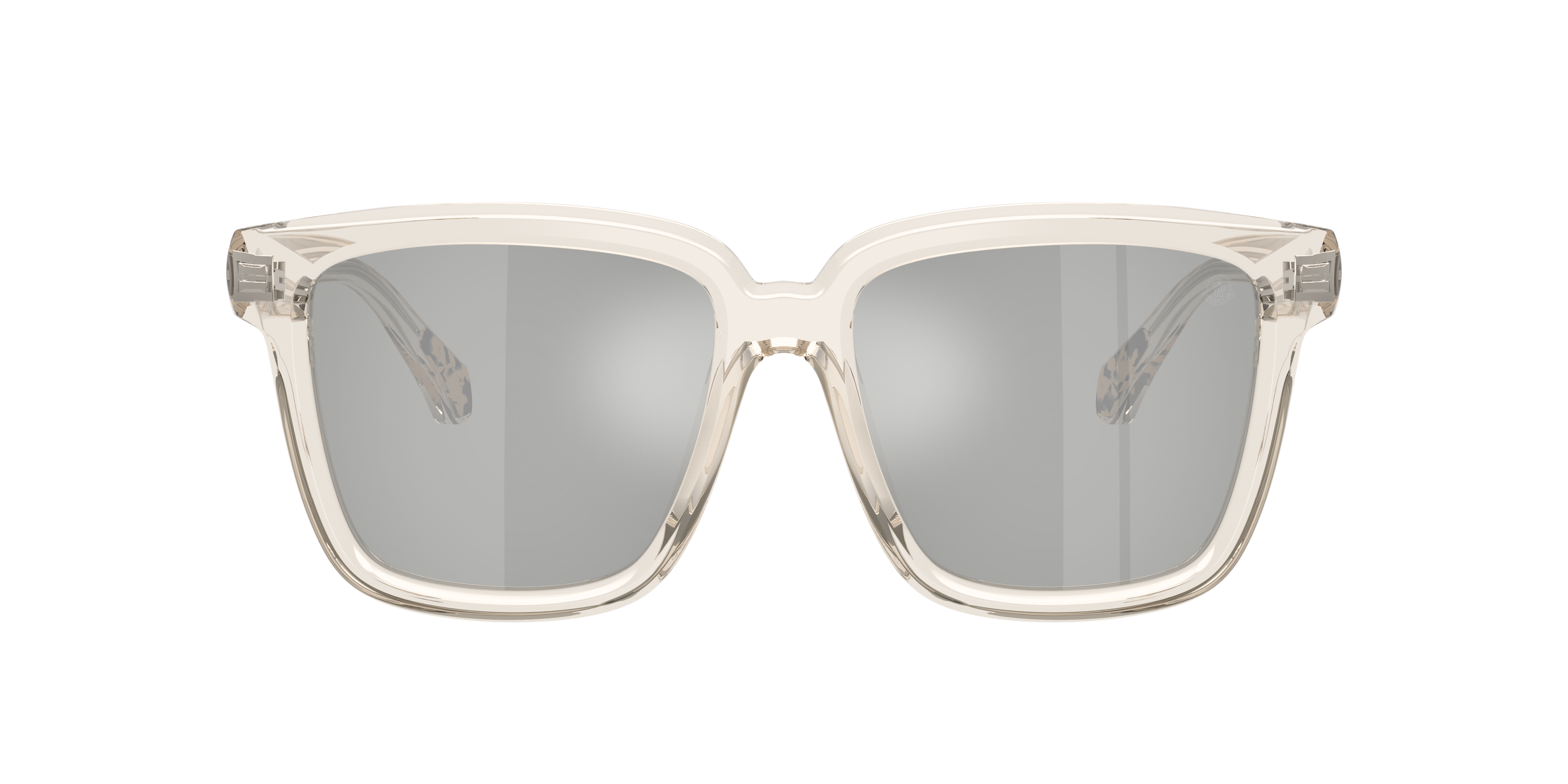 The Moncler ME6026 CLASICO sunglasses embody timeless style with their pillow-shaped plastic frames in a clear/white hue. Silver mirrored lenses add a sleek, metallic effect while offering protection against intense light and glare. Accented with sporty touches, these acetate temples balance heritage and modernity effortlessly.