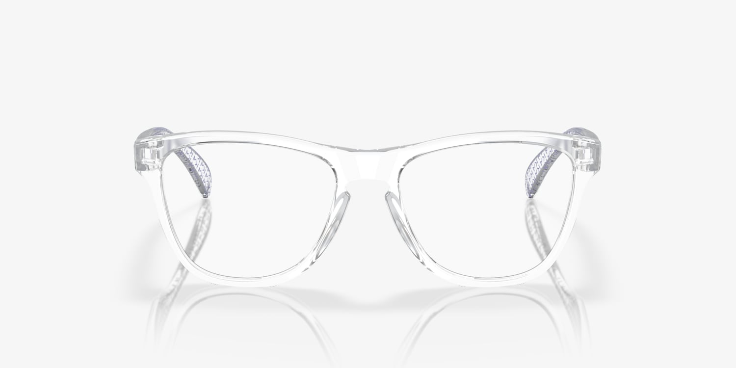 The Oakley Kylian Mbappé Signature Series Frogskins™ XS (Youth Fit) Square frames are crafted from durable O Matter™ material in a polished clear finish. These glasses features a keyhole bridge, providing a secure fit while also adding to their stylish appeal. Available with prescription lenses.