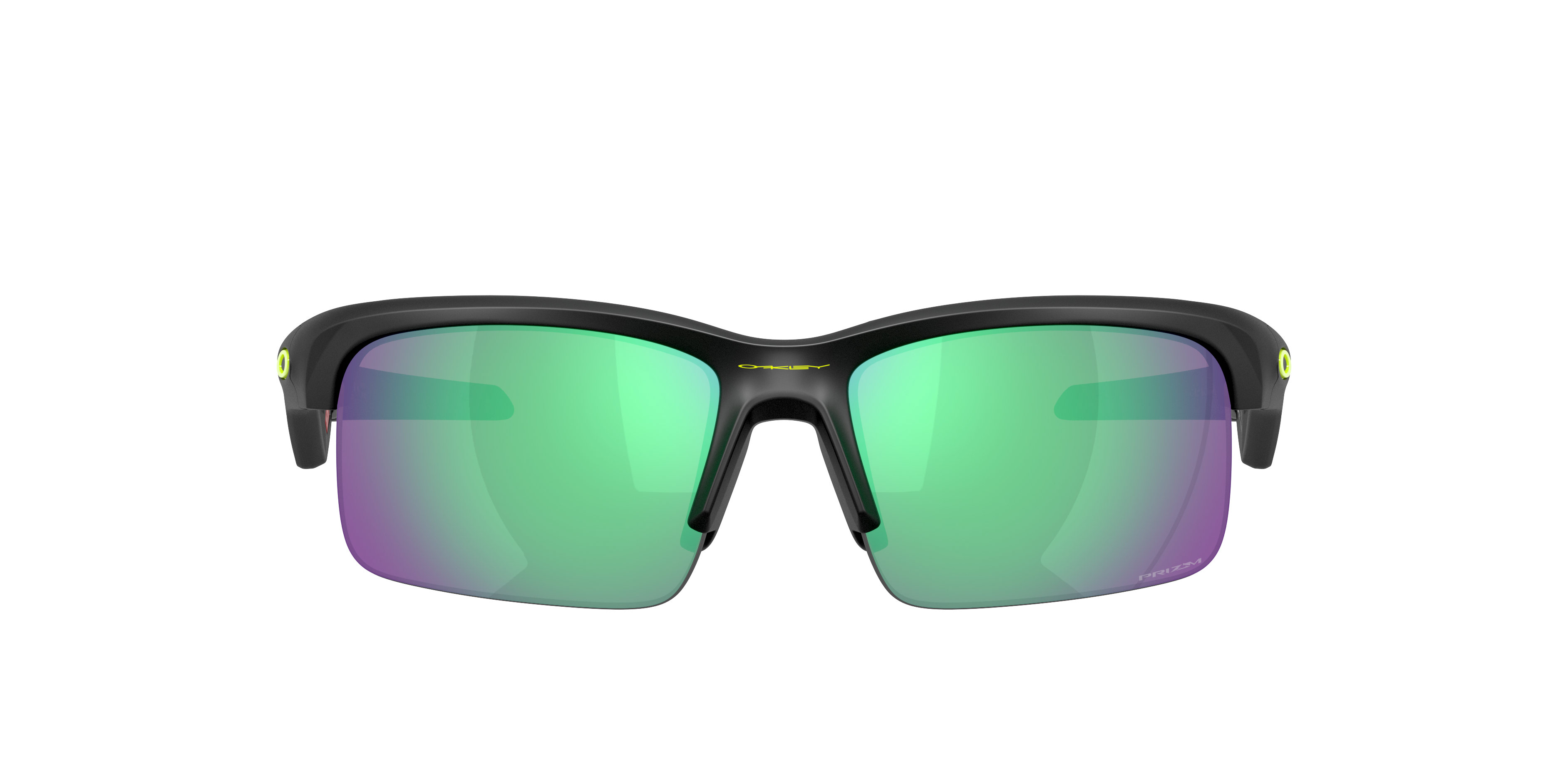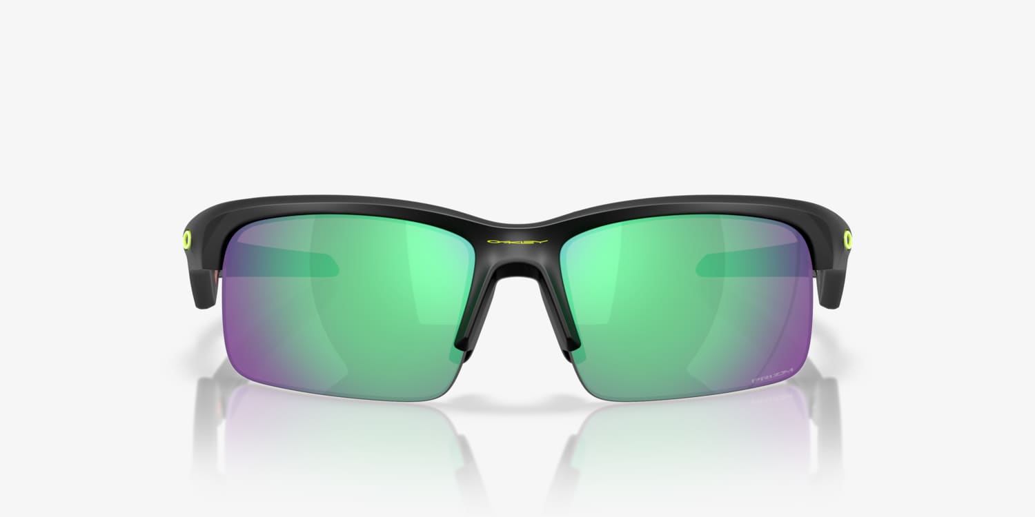 Introduce your child to the world of Oakley with Capacitor. These glasses feature a matte black frame in a rectangle shape, offering a trendy look that is perfect for any adventure. The Prizmâ„¢ road jade lenses not only provide optimal clarity but also enhance color contrast, making them ideal for outdoor activities.