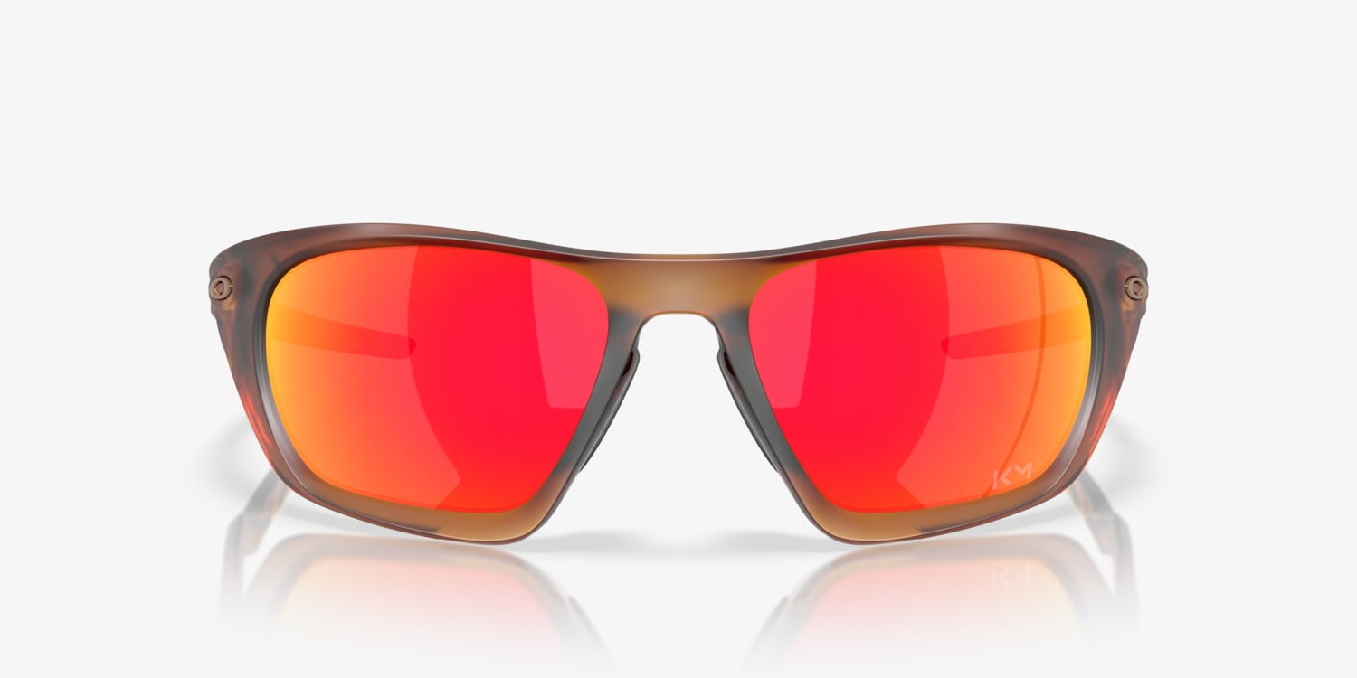 Oakley Kylian Mbappé Signature Series Lateralis glasses are a perfect blend of style and performance. The rectangle shape and matte dark amber frame, crafted from durable O Matter™ material, offer a modern look while providing excellent comfort. Prizm™ ruby lenses enhance contrast and detail to deliver superior optical clarity. These shades also feature Oakley's signature prism technology that optimizes color for specific sports and activities.